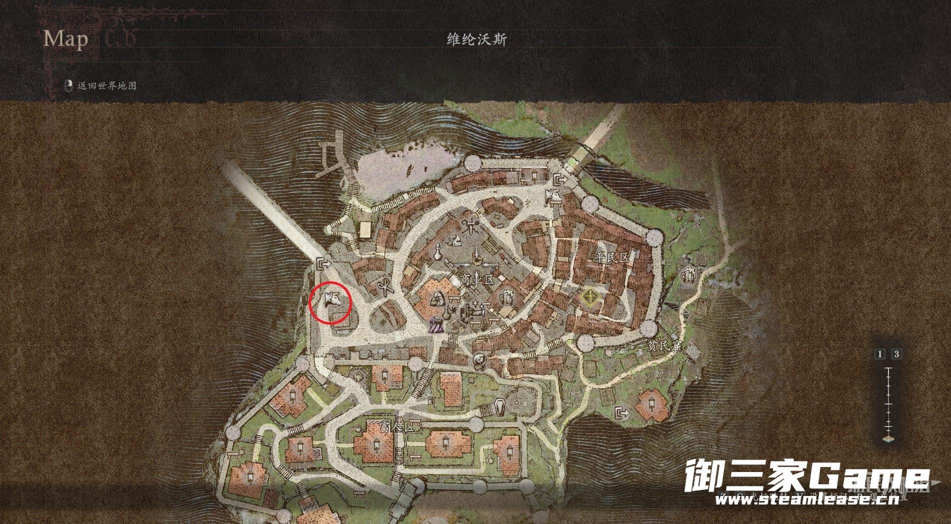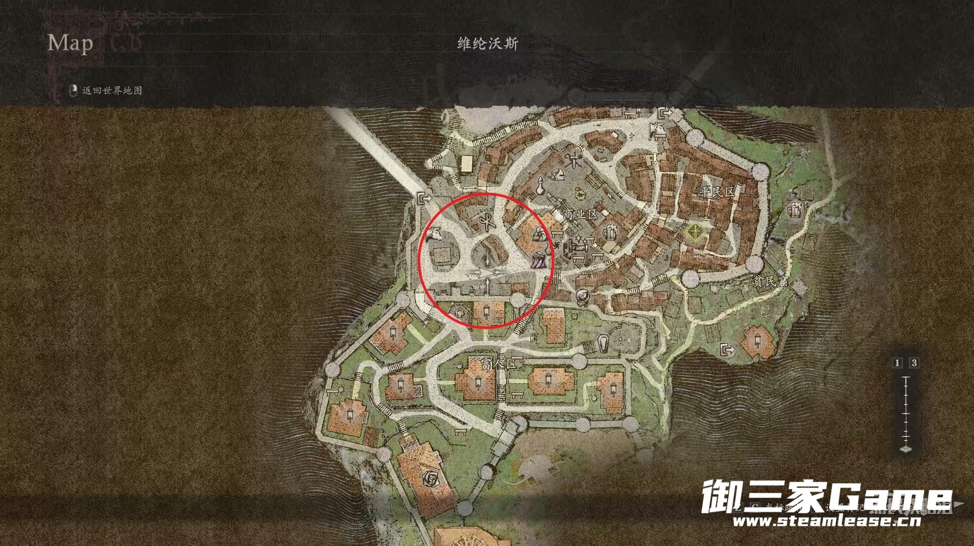 回到维伦沃斯在武器店随便购买3把武器,在下图画圈的位置来回走就能触发男孩想要寻找教官的剧情。运气好一次就能触发,如果没有多走几回。