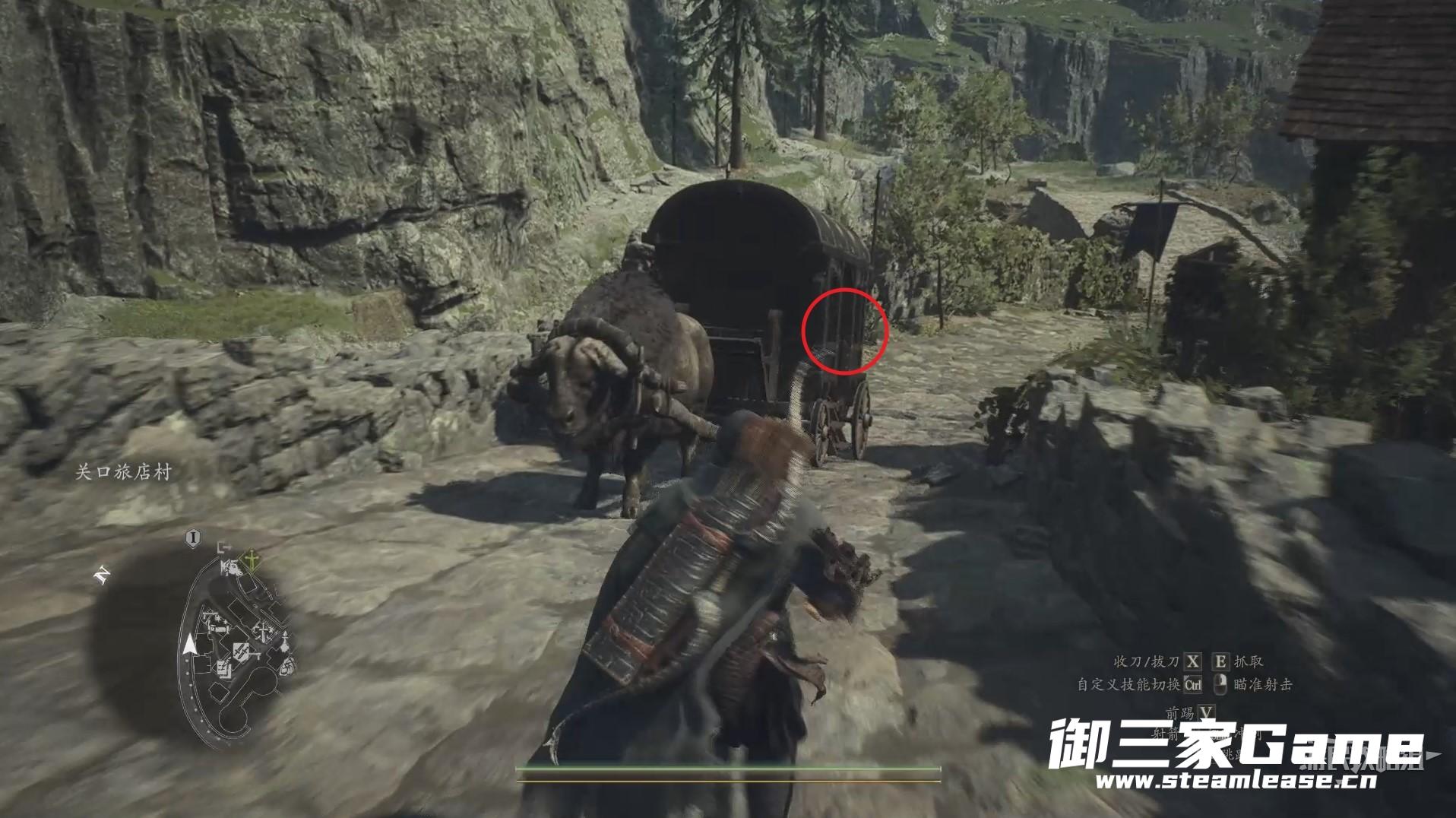 如果主线做到前往兽人国度的话可以直接走过边境门,如果主线还到就找个椅子坐到第二天,注意观察往国境门走的单行道上的牛车,如果看到下图所示的黑色牛车直接跳上去。
