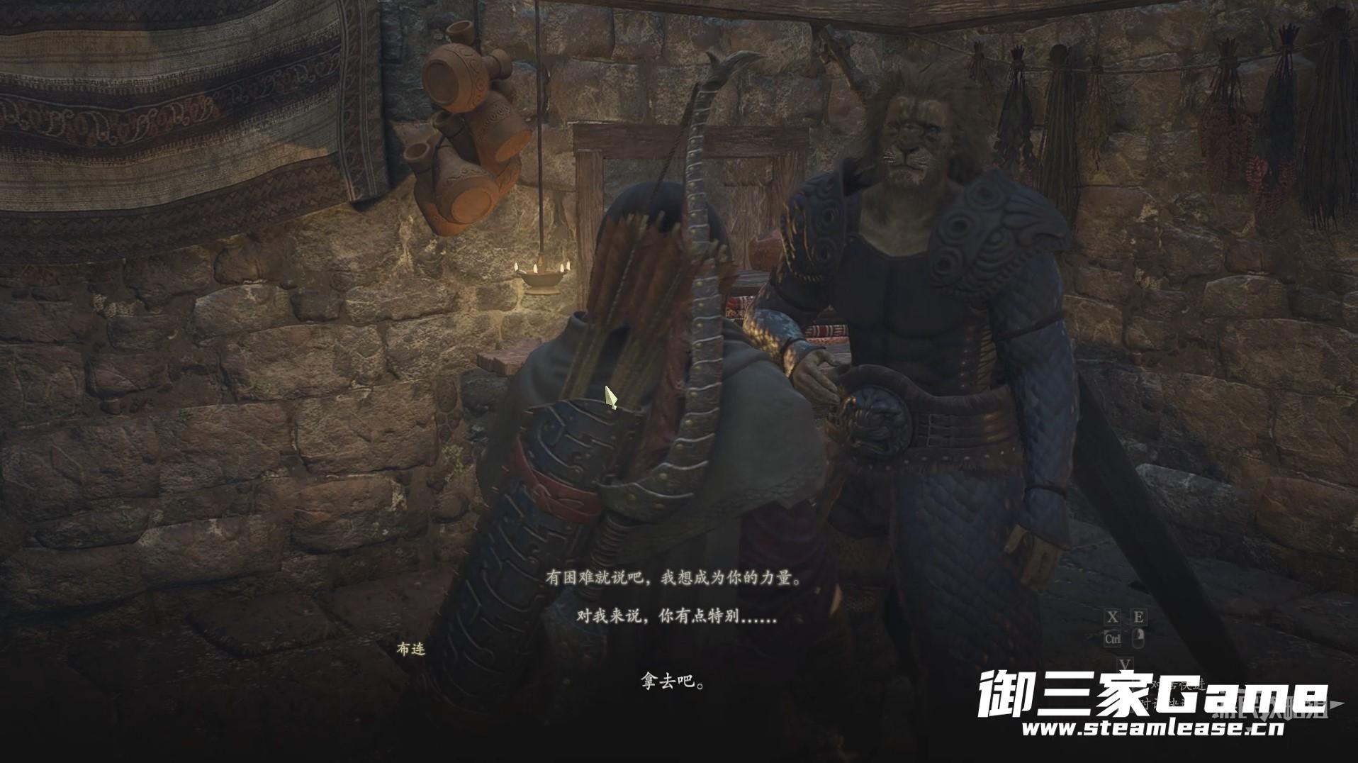 接着再次前往篝火直接睡到明天晚上,来到帐篷与布连对话,他会给我们一把武器并表示自己要前往兽人王国。