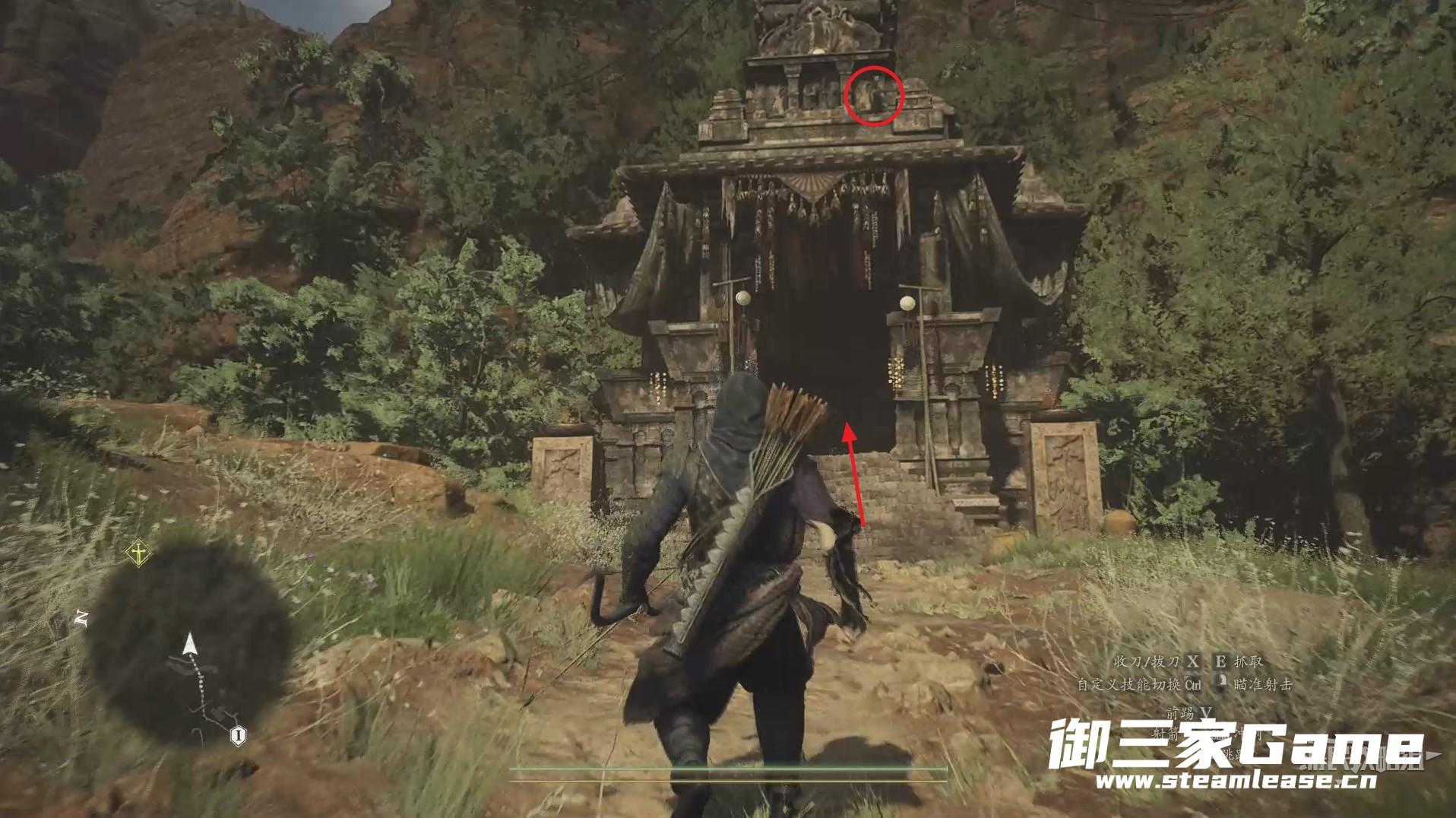 从神殿左侧的楼梯登上房顶,走到建筑正门处的位置可以看到她的真身就这里坐着。