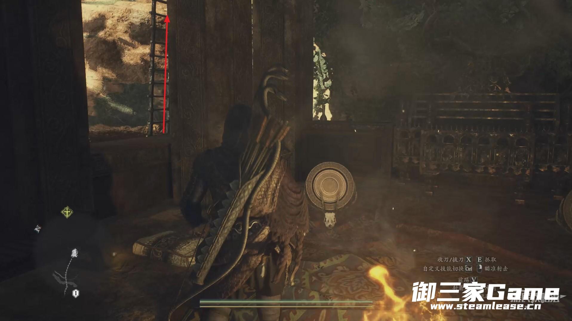 来到礼拜神殿的大门口可以看到门口上方屋顶有一个人,这是里面老太太的真身,我们先要与里面的假人对话解锁幻术师职业。