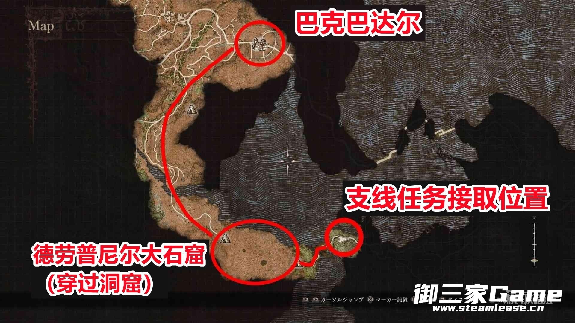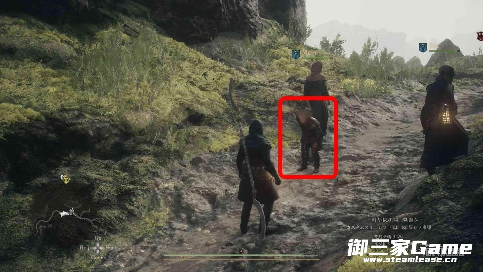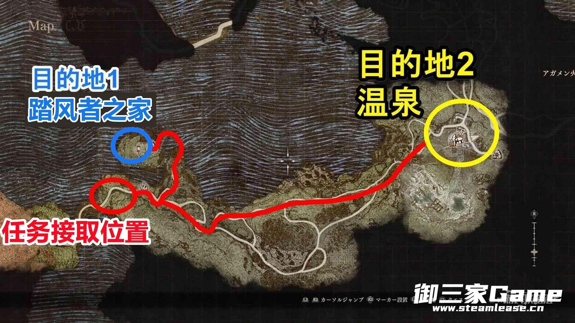 在支线任务「隐居的夫妇」期间需要护送古斯塔夫到达目的地,这里建议在接取任务前先把沿路的怪都清掉,然后分别把火山岛营地温泉和踏风者之家中的蜥蜴酒拿走,再接取任务开始护送。开始护送后,如果古斯塔夫半路停下,可以按R2抱起他快速移动。