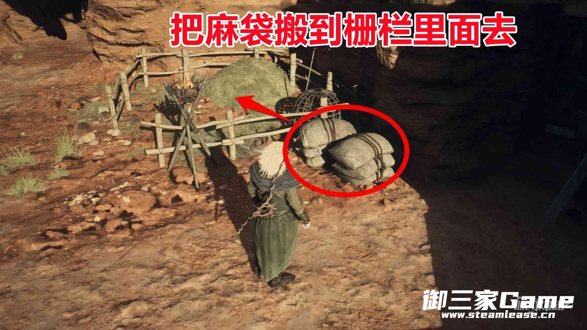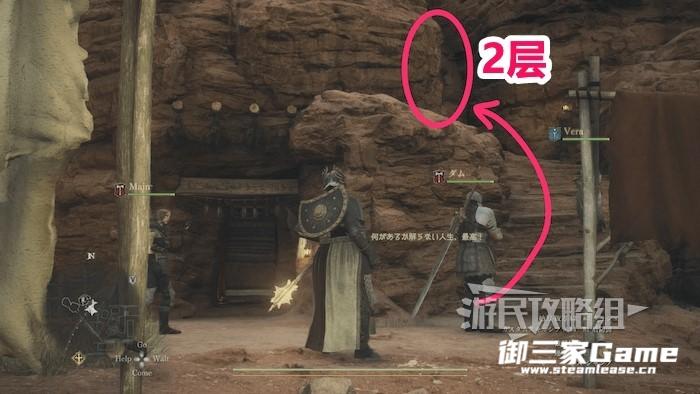如何进入2层:①先按R2把酒铺前的麻袋搬到栅栏里面去。②如果玩家角色为人类,触发战斗后击败敌人即可进入2层;如果玩家角色为兽人或戴了兽人面具,跟随指引进入2层即可。③如果玩家角色为兽人,购买之后会触发战斗,击败敌人即可。