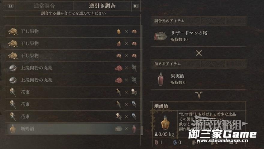 蜥蜴酒还可以用「果酒」和「蜥蜴尾巴」调配合成获得。「果酒」可以通过完成支线任务「巴达尔的洗礼」获得。