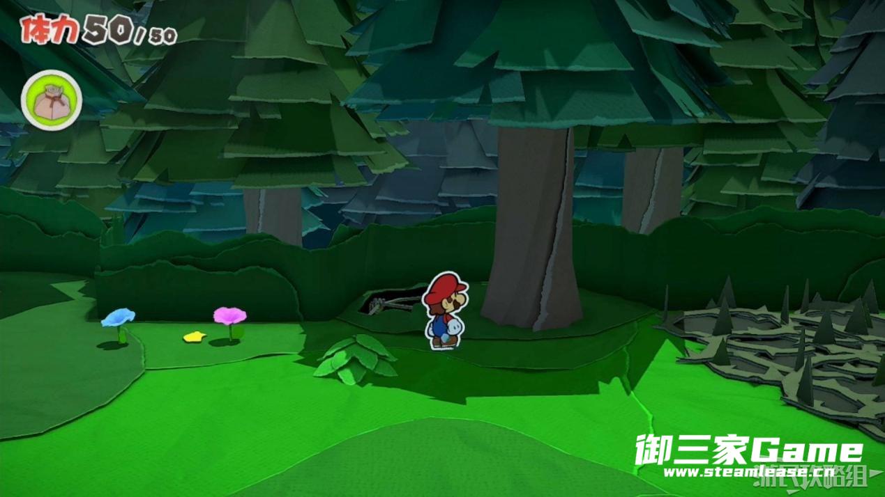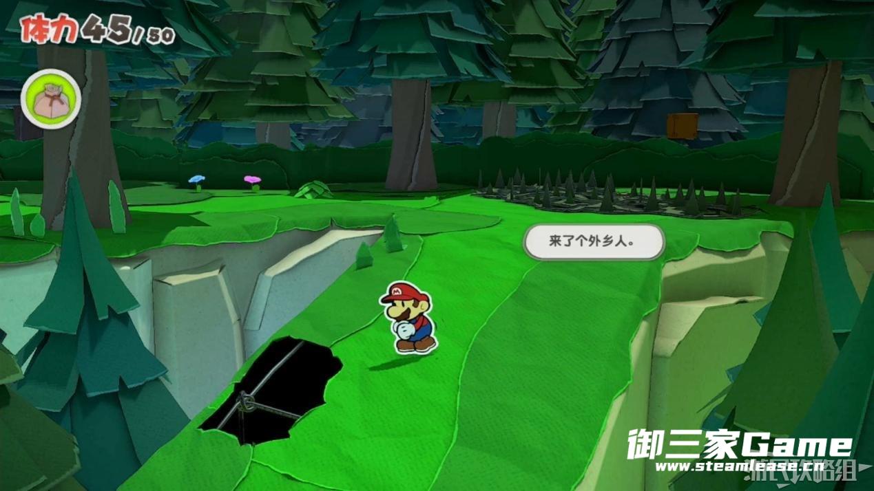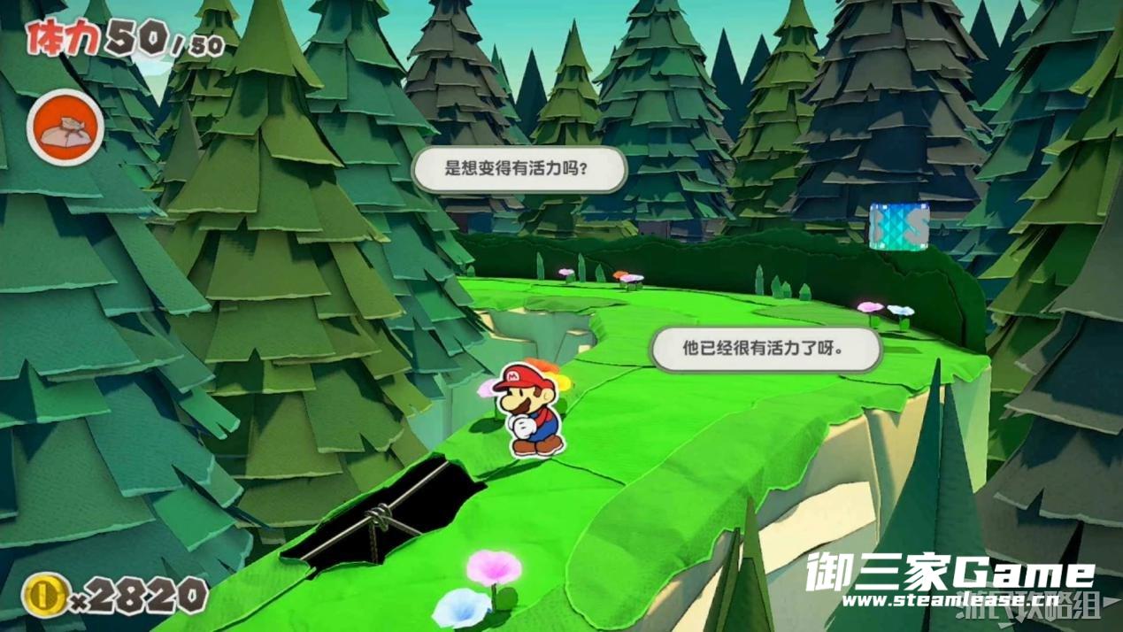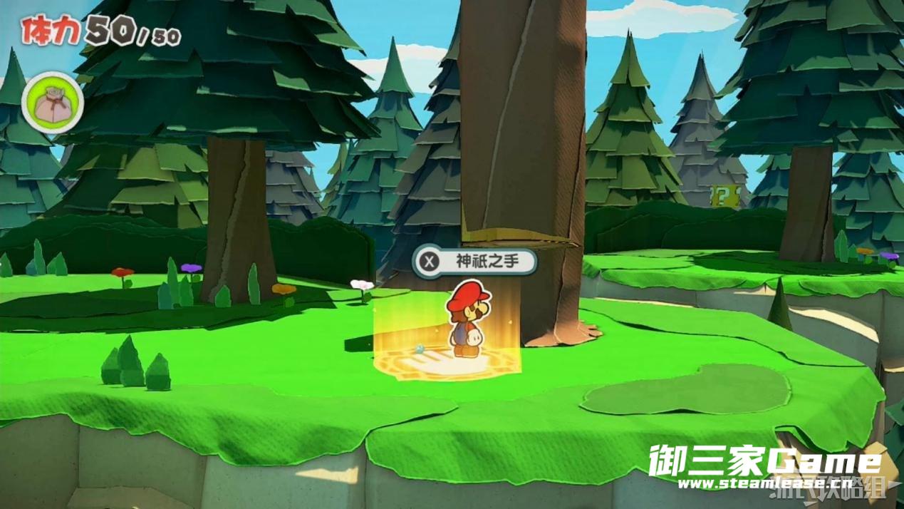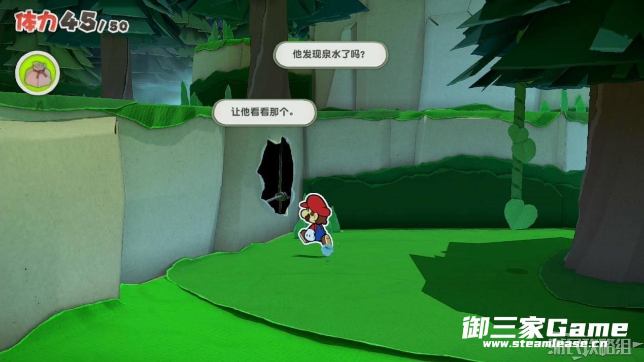 触发剧情,原来大树桩是被折纸砍断的德库爷爷,也正是因为如此德库爷爷十分讨厌纸片,只有能给他带来生命种子才会放马力欧离开。为了帮助马力欧获得生命种子,导致人迷路的阵法暂时解开了,从地图右下角的小路离开前往寻找生命种子。