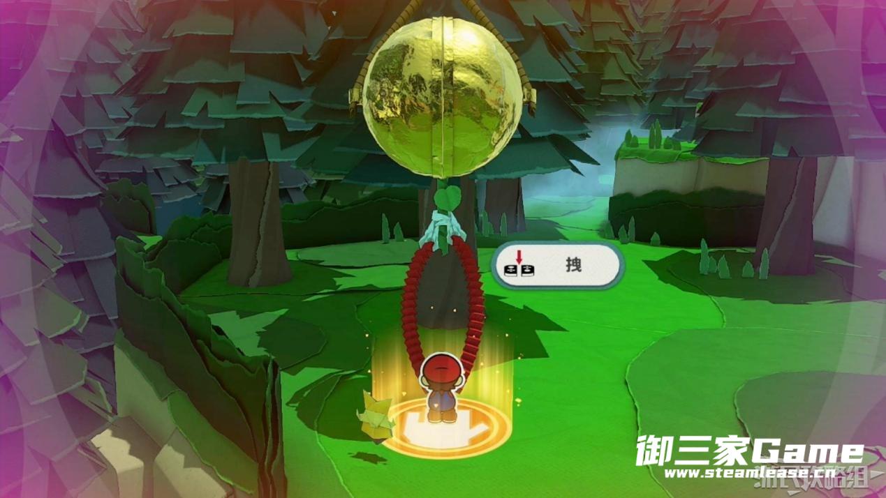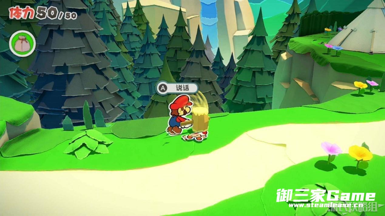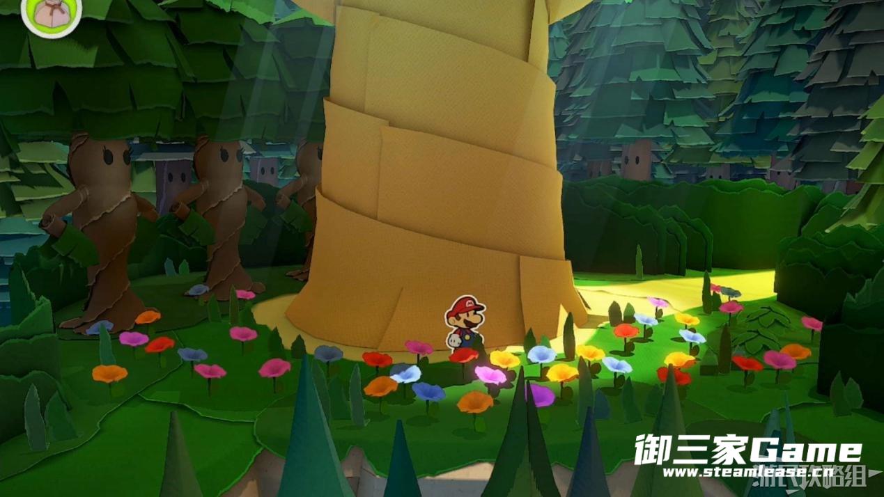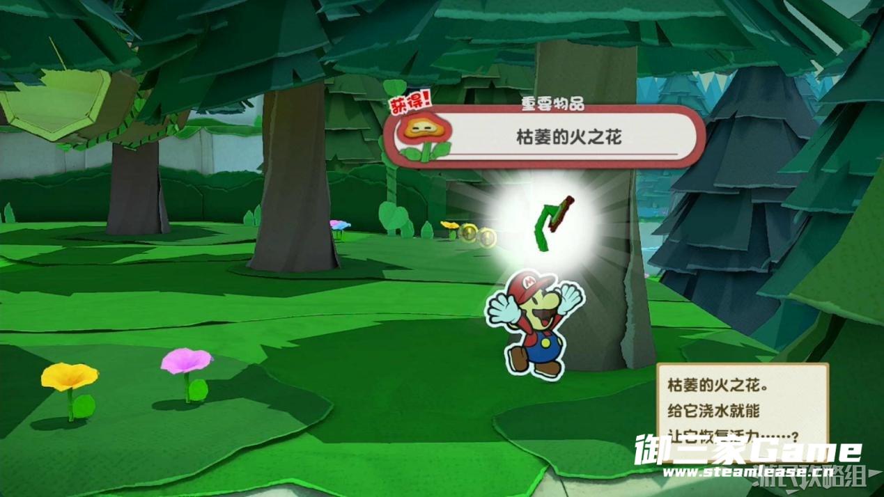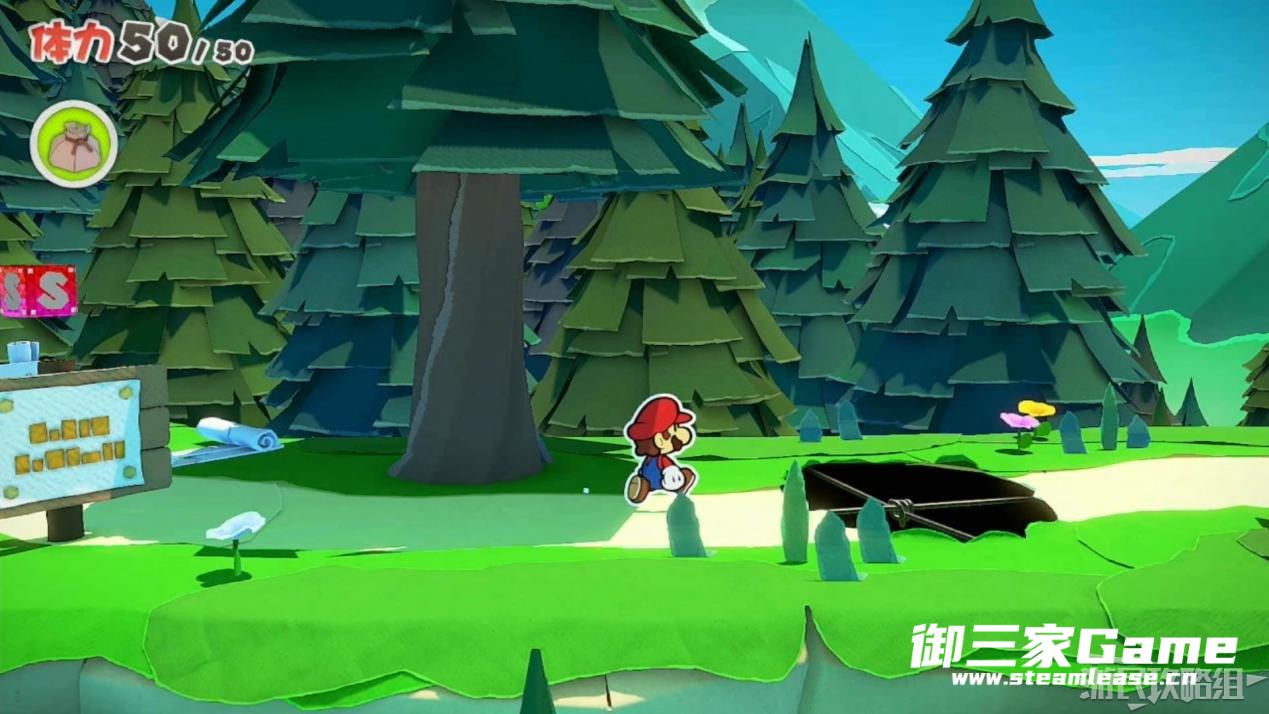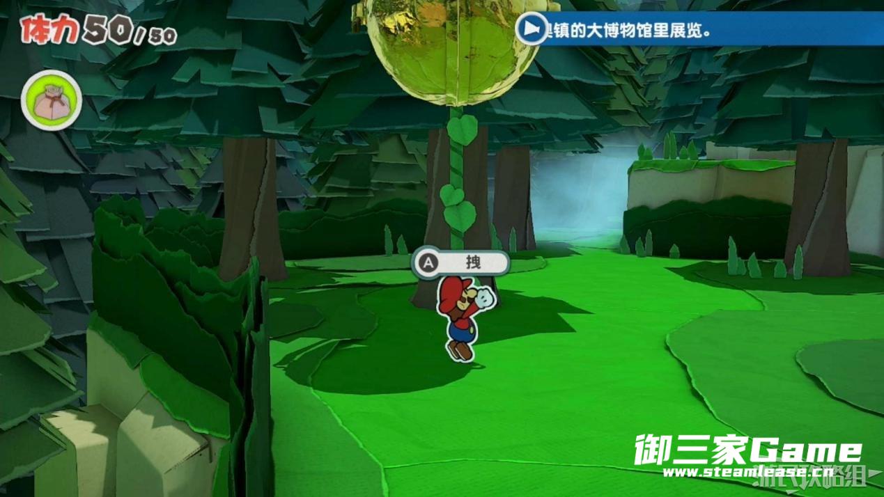 触发剧情,原来大树桩是被折纸砍断的德库爷爷,也正是因为如此德库爷爷十分讨厌纸片,只有能给他带来生命种子才会放马力欧离开。为了帮助马力欧获得生命种子,导致人迷路的阵法暂时解开了,从地图右下角的小路离开前往寻找生命种子。