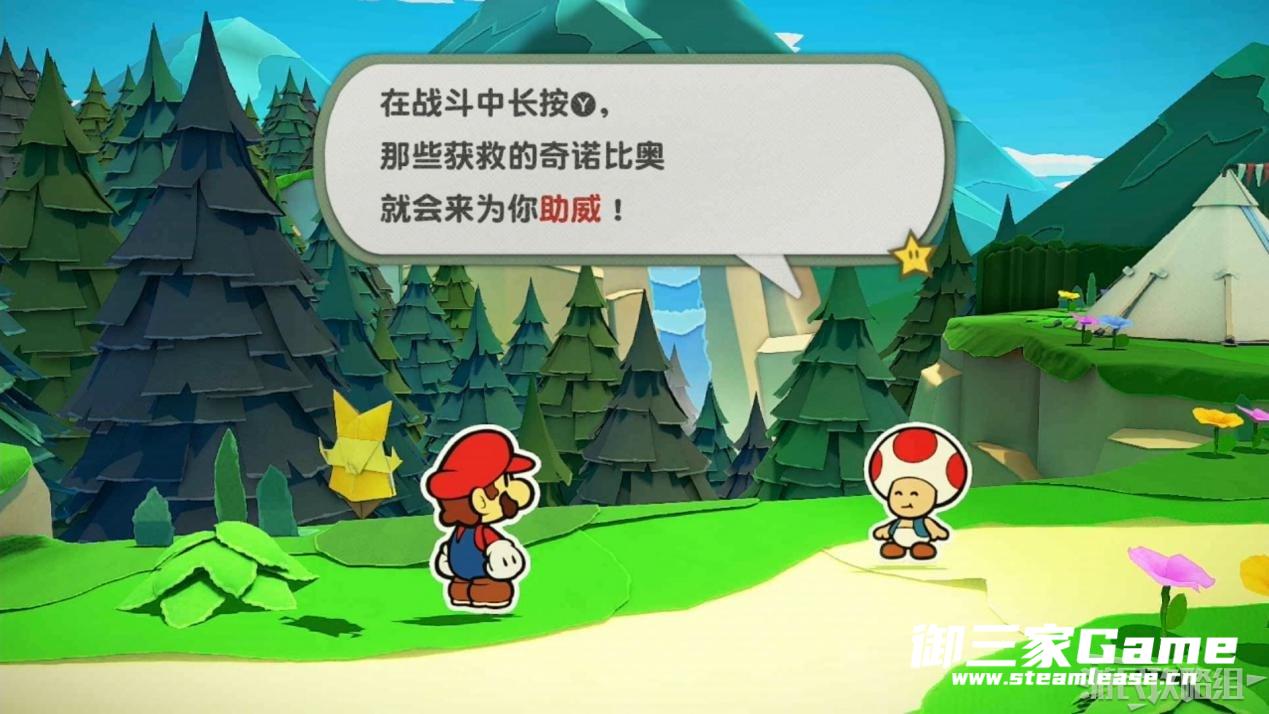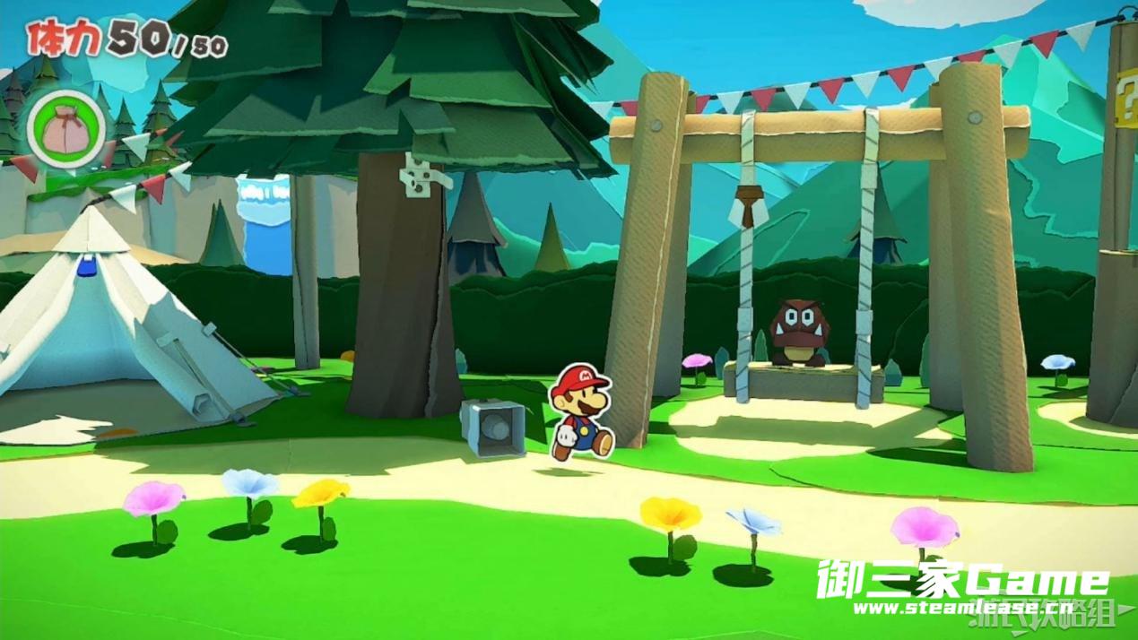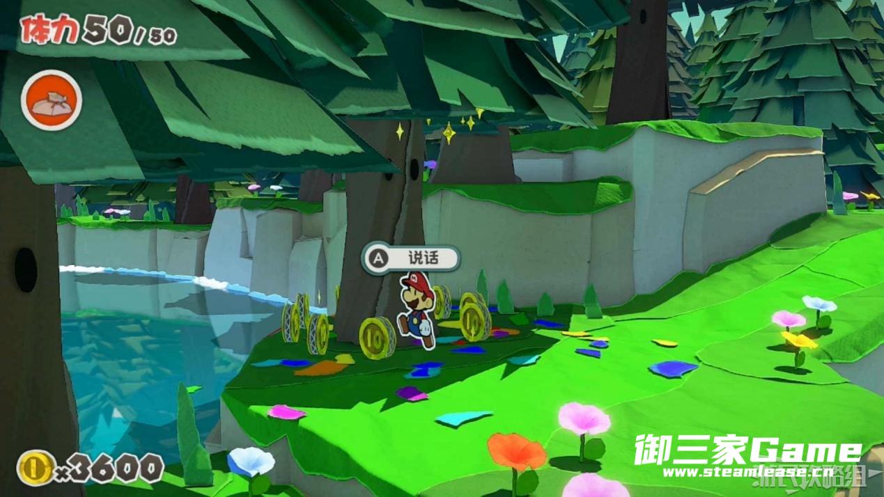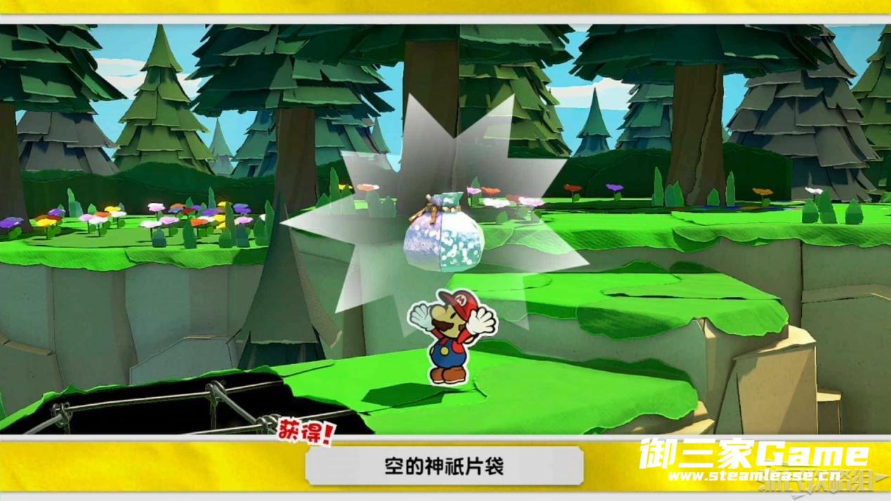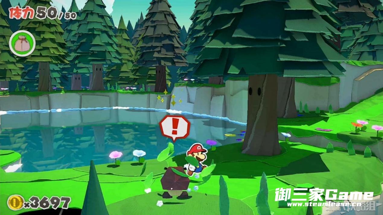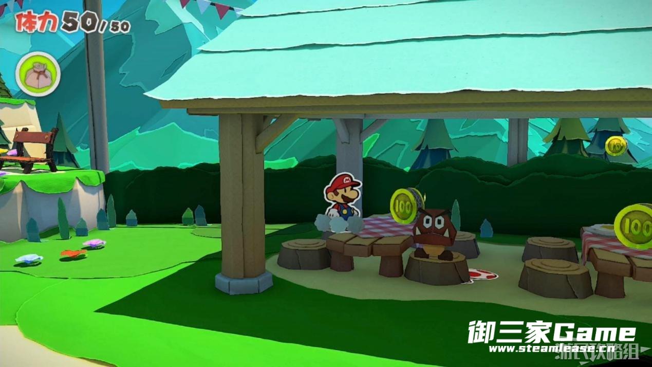 触发剧情,原来大树桩是被折纸砍断的德库爷爷,也正是因为如此德库爷爷十分讨厌纸片,只有能给他带来生命种子才会放马力欧离开。为了帮助马力欧获得生命种子,导致人迷路的阵法暂时解开了,从地图右下角的小路离开前往寻找生命种子。