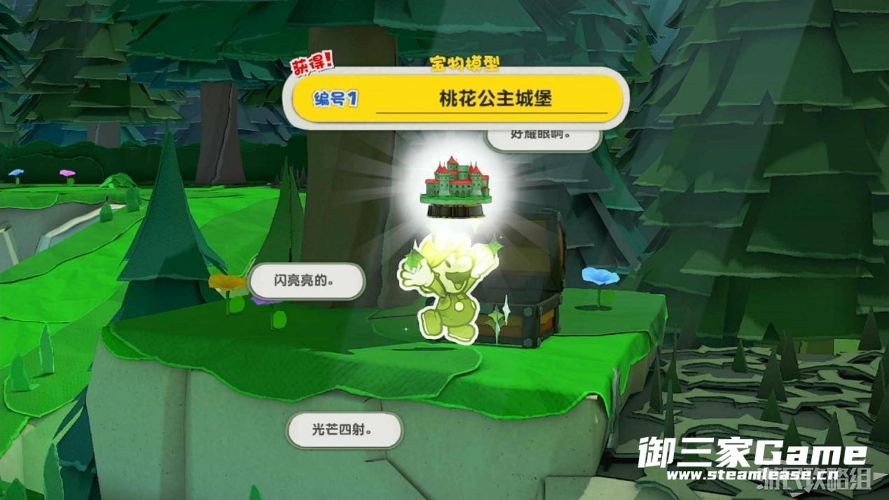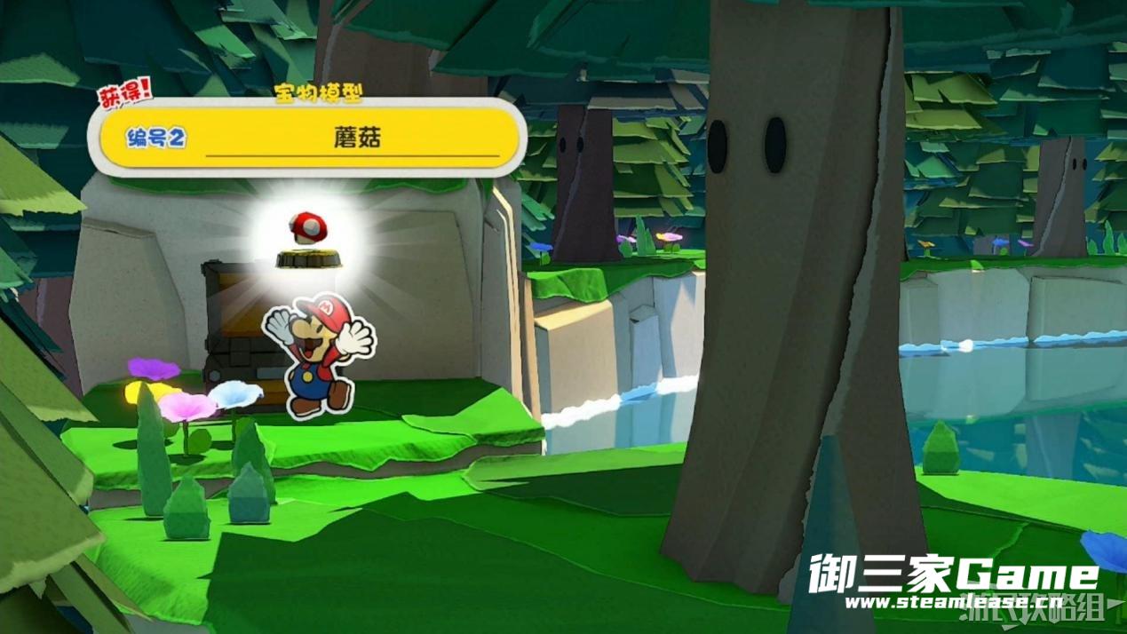 道路尽头处有一个宝箱,打开宝箱可以获得蘑菇宝物模型。