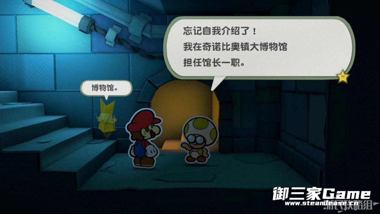 向右走遇到奇诺比奥大博物馆馆长,我们所有的收藏品都可以在博物馆看到。