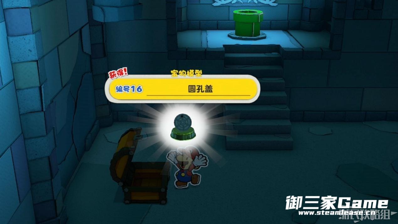 打开宝箱获得圆孔盖宝物模型。