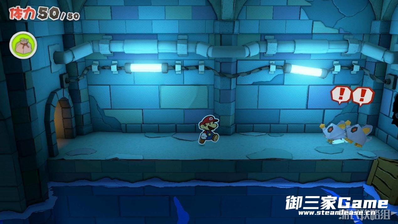 进入下一层后打开大门左边的开关,之后一直向右跑,跑到空心洞前与敌人战斗。