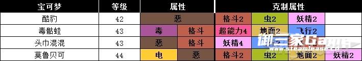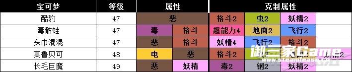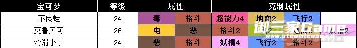 由于此次对战玛俐多使用恶系宝可梦,因此建议使用可以克制的【格斗】系宝可梦。