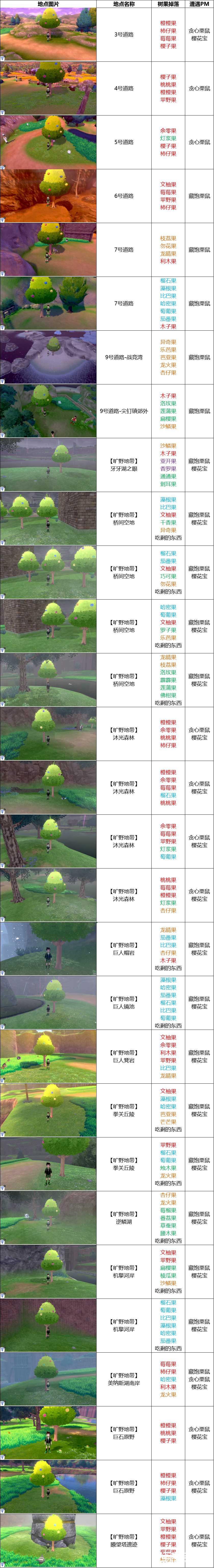 《宝可梦剑盾》中的树果有着许多种类并拥有神奇的效果,让宝可梦食用后可以解除一些异常状态,比如樱子果可以解除宝可梦的麻痹状态。请看下面由“-jerryglc-”带来的《宝可梦剑盾》全树果掉落分布及效果一览,希望对大家有用。