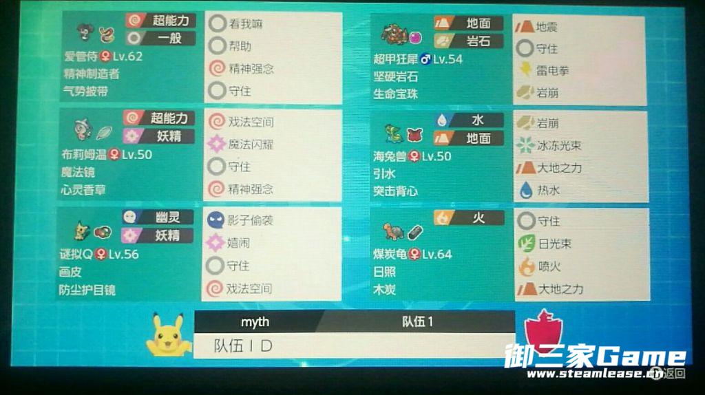 这里我带了超能兄弟姐妹、超甲狂犀、海兔兽、谜拟Q和煤炭龟。