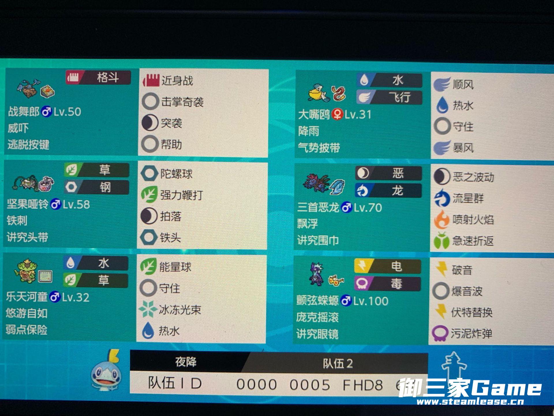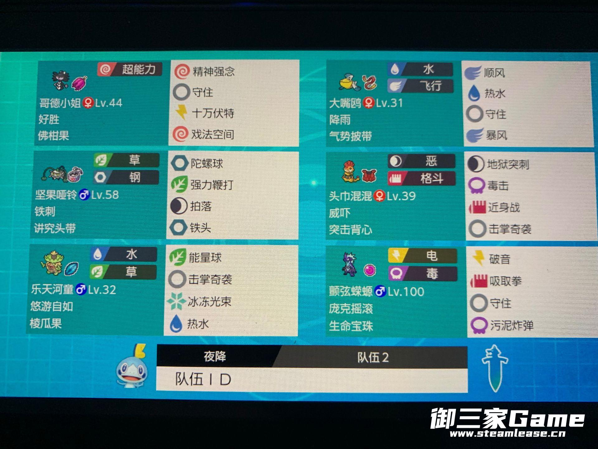 《宝可梦剑盾》中玩家通过培养各种类型的宝可梦去参加排位赛,组成多种队伍来战胜其他玩家,下面就为大家带来玩家“夜降”的《宝可梦剑盾》S1双打雨天毒电队伍阵容分享,希望对大家有用。