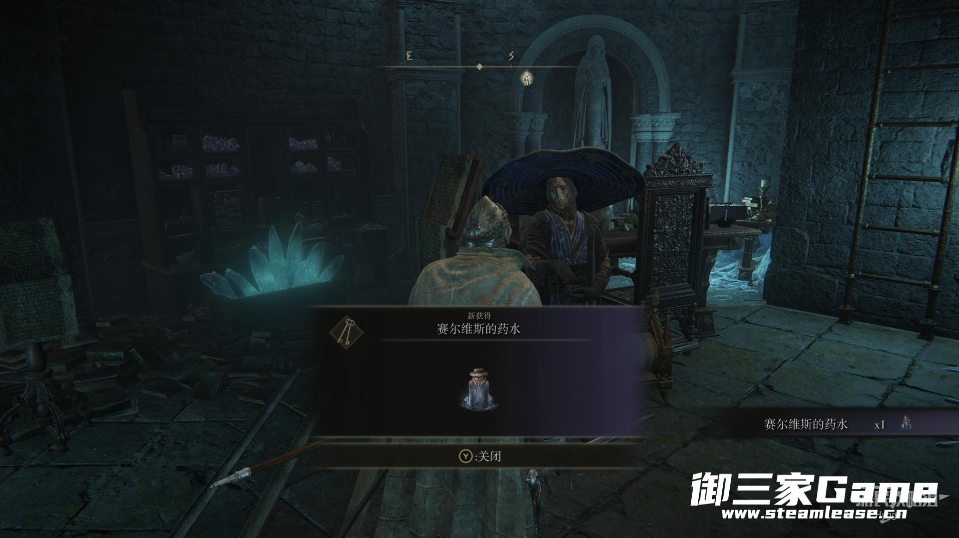 塞尔维斯表示要我们将一瓶药给涅斐丽·露喝下,答应他后获得道具【塞尔维斯的药水】。