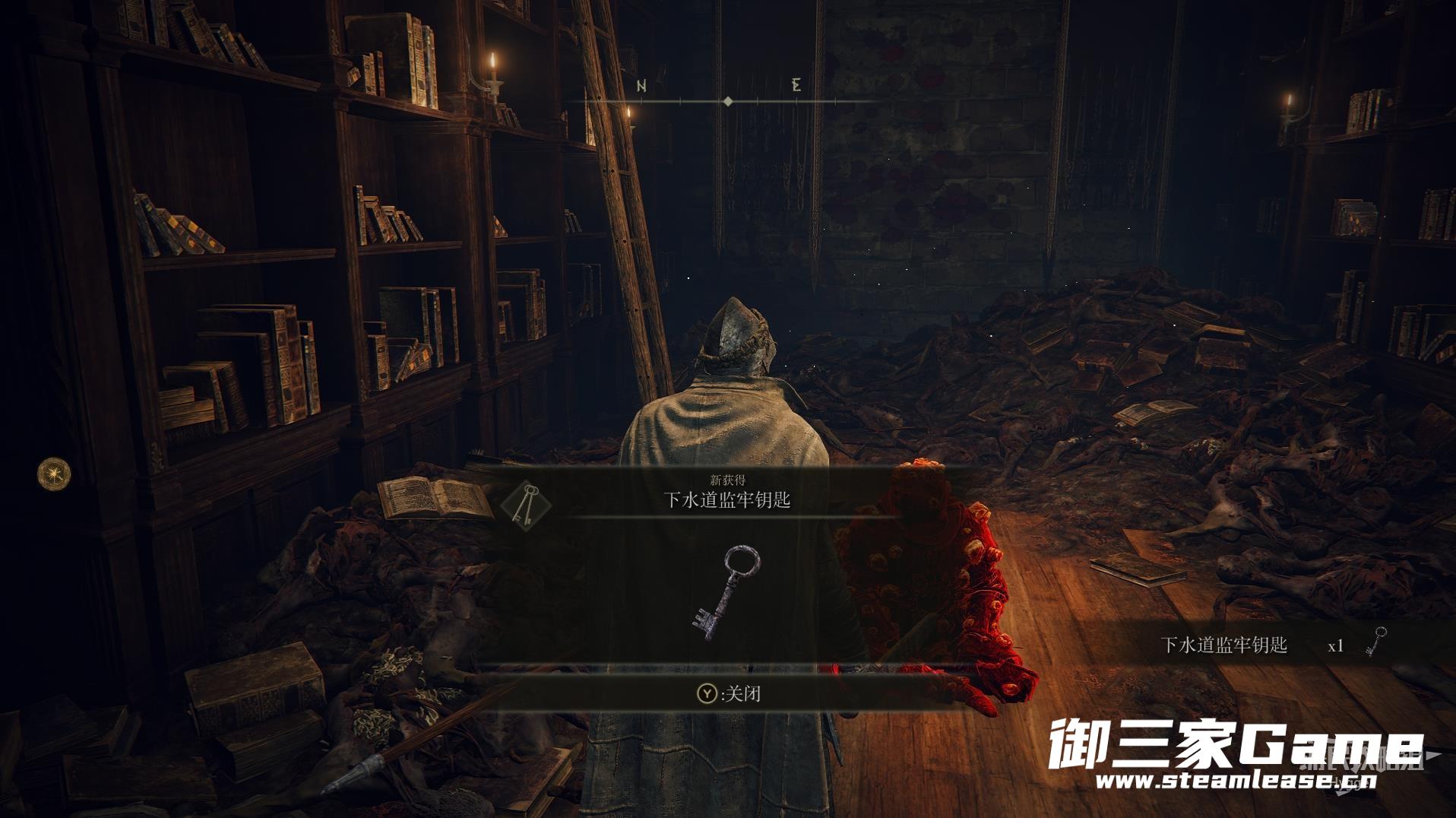 当玩家角色抵达王城,并获得一个【温床的诅咒】后,回到圆桌厅堂与孪生老妪旁边房间中的食粪者交谈获得【下水道监牢钥匙】。
