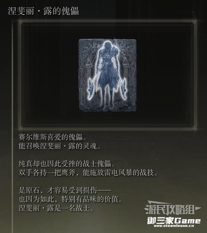获取该傀儡需要在触发菈妮的支线任务后,来到利耶尼亚湖西北的【塞尔维斯魔法师塔】。