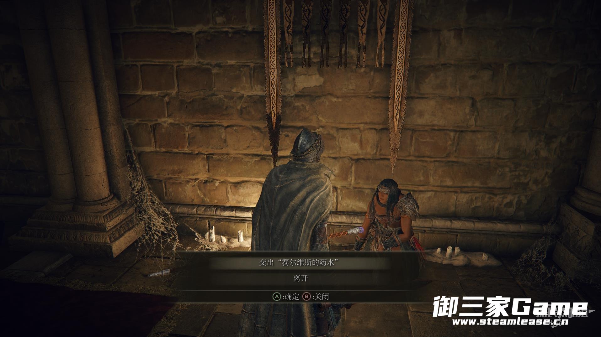 塞尔维斯表示要我们将一瓶药给涅斐丽·露喝下,答应他后获得道具【塞尔维斯的药水】。