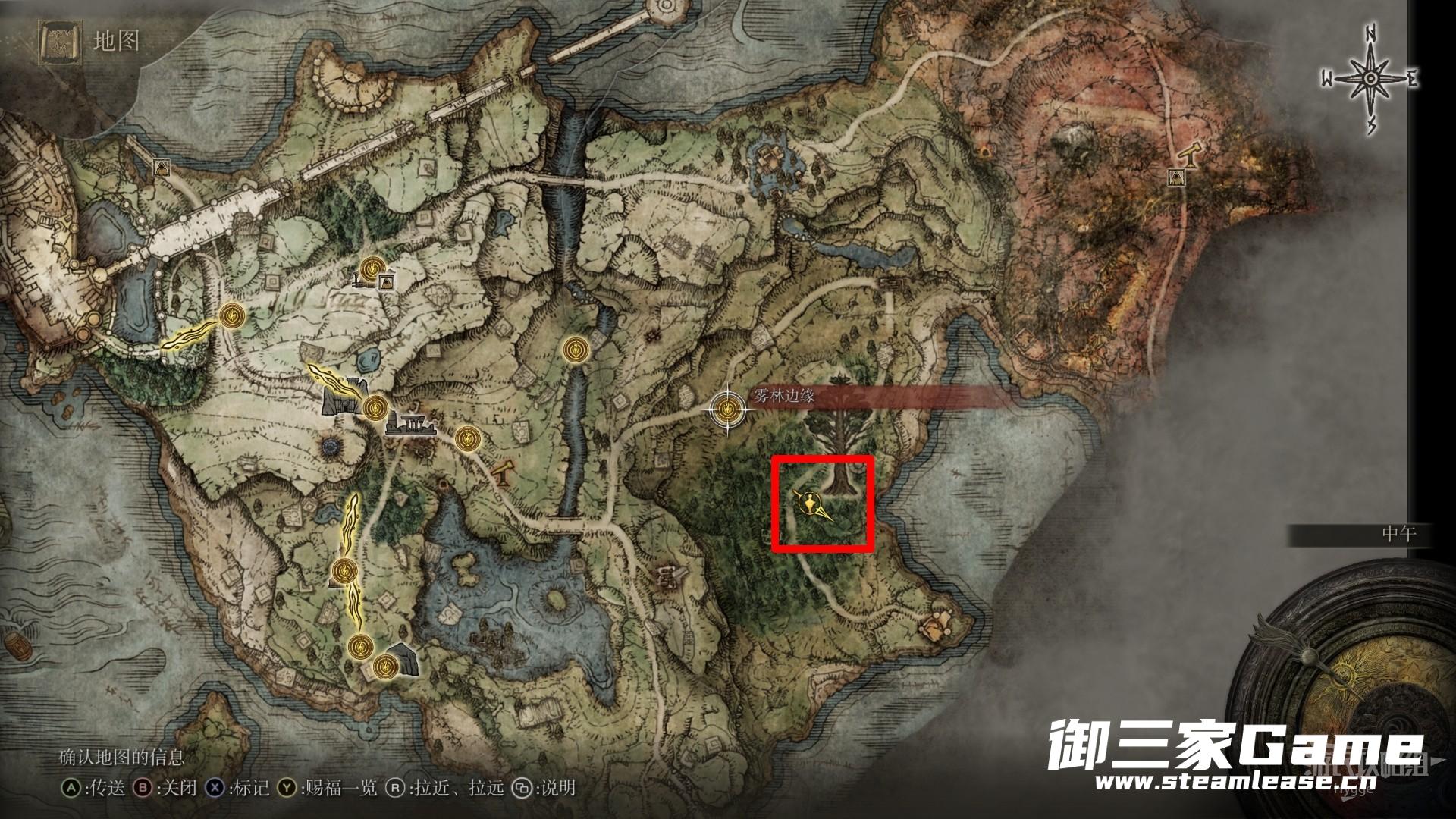 该战灰位于宁姆格福【雾林边缘】东南方向的小黄金树附近。