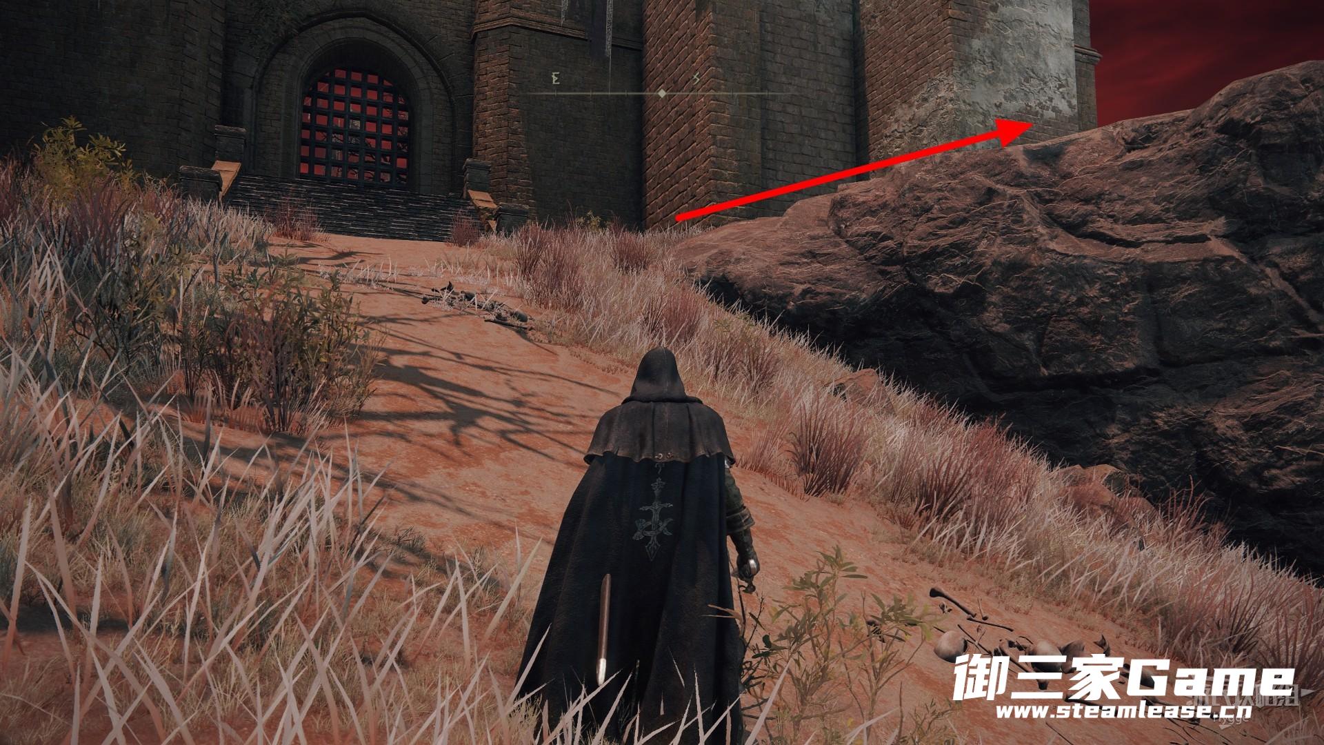 来到红狮子城城门处向右沿着城墙边的平台前进。
