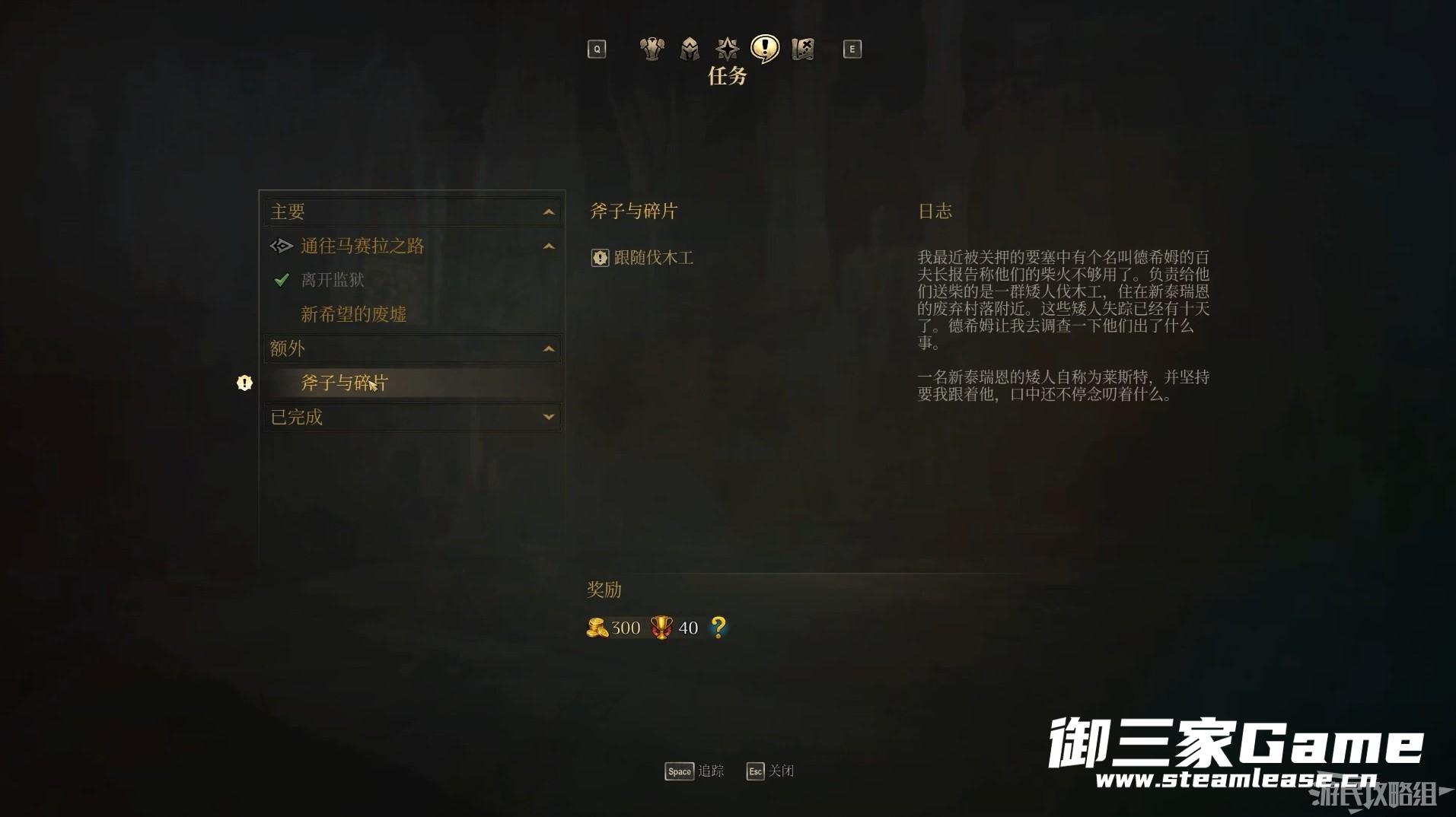 按下J键可以打开任务列表查看已承接和已完成的全部任务。
