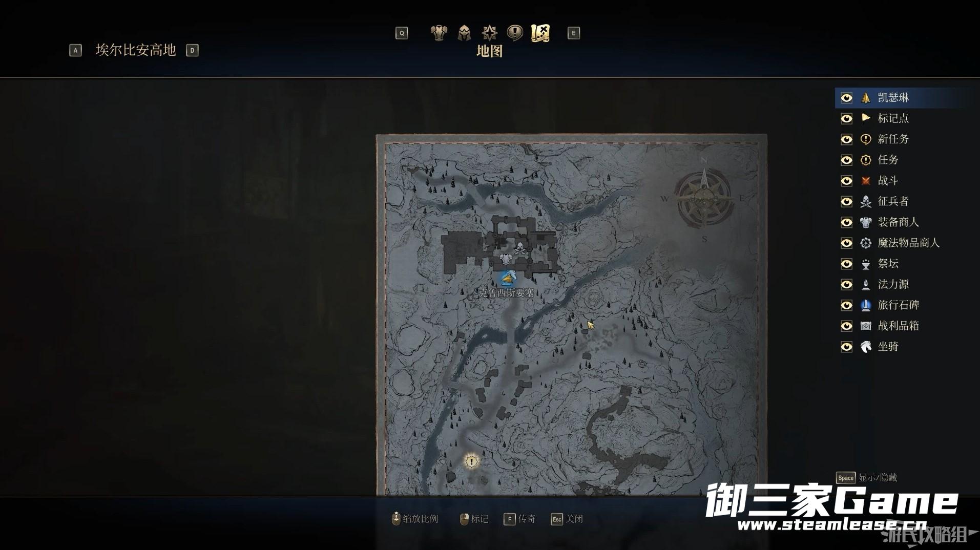 按M键即可打开地图,通过对照图例即可快速找到我们的目标所在位置。