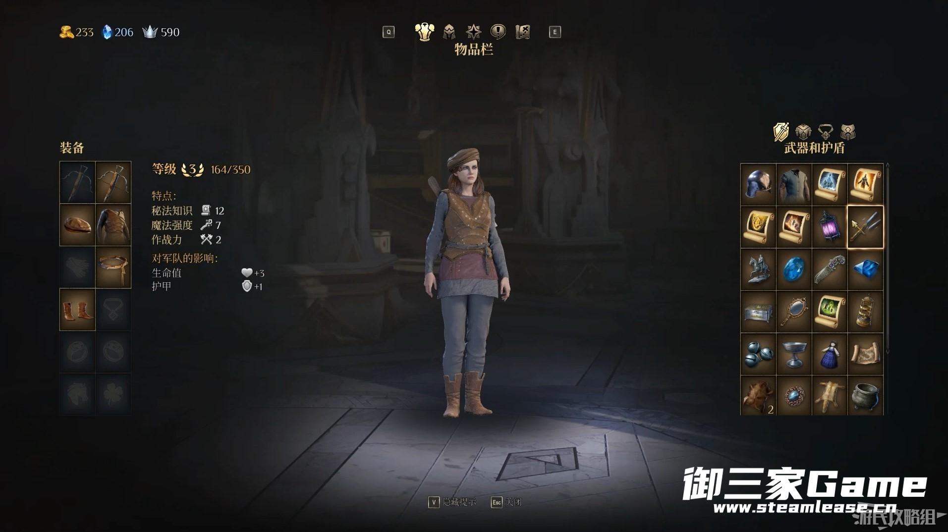 按下I键可以打开物品栏界面,我们可以在此处查看我们获得的全部道具,同时在该界面中我们也可以为角色更换装备从而增强角色实力。