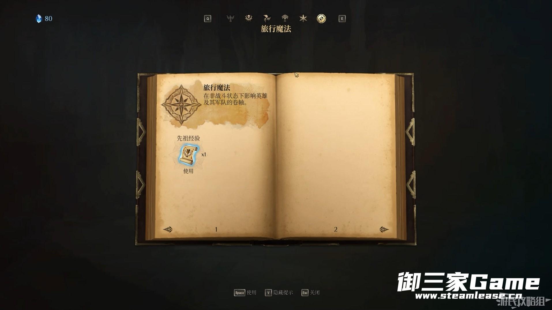 除常规法术外,在魔法书中还能够查看和使用已经获得的旅行法术,旅行法术能够在多场战斗中生效,有提高英雄属性或提供新的部队等功能。