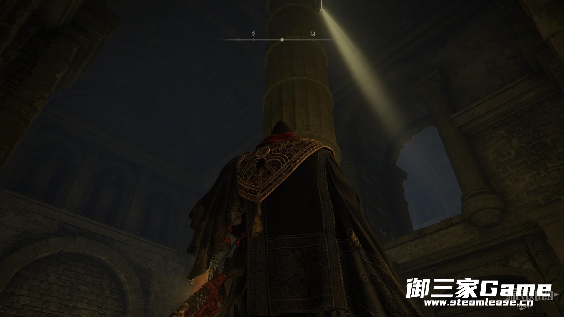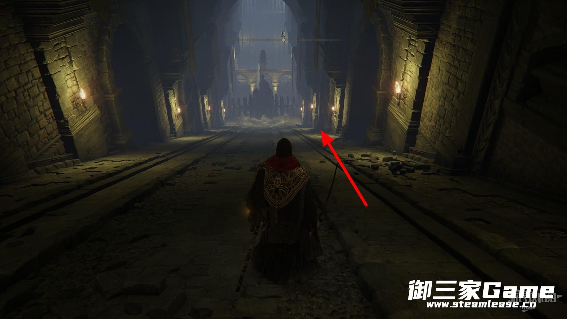 攻击一下火焰机关所在的柱子,使照射的光穿过墓室的窗户。