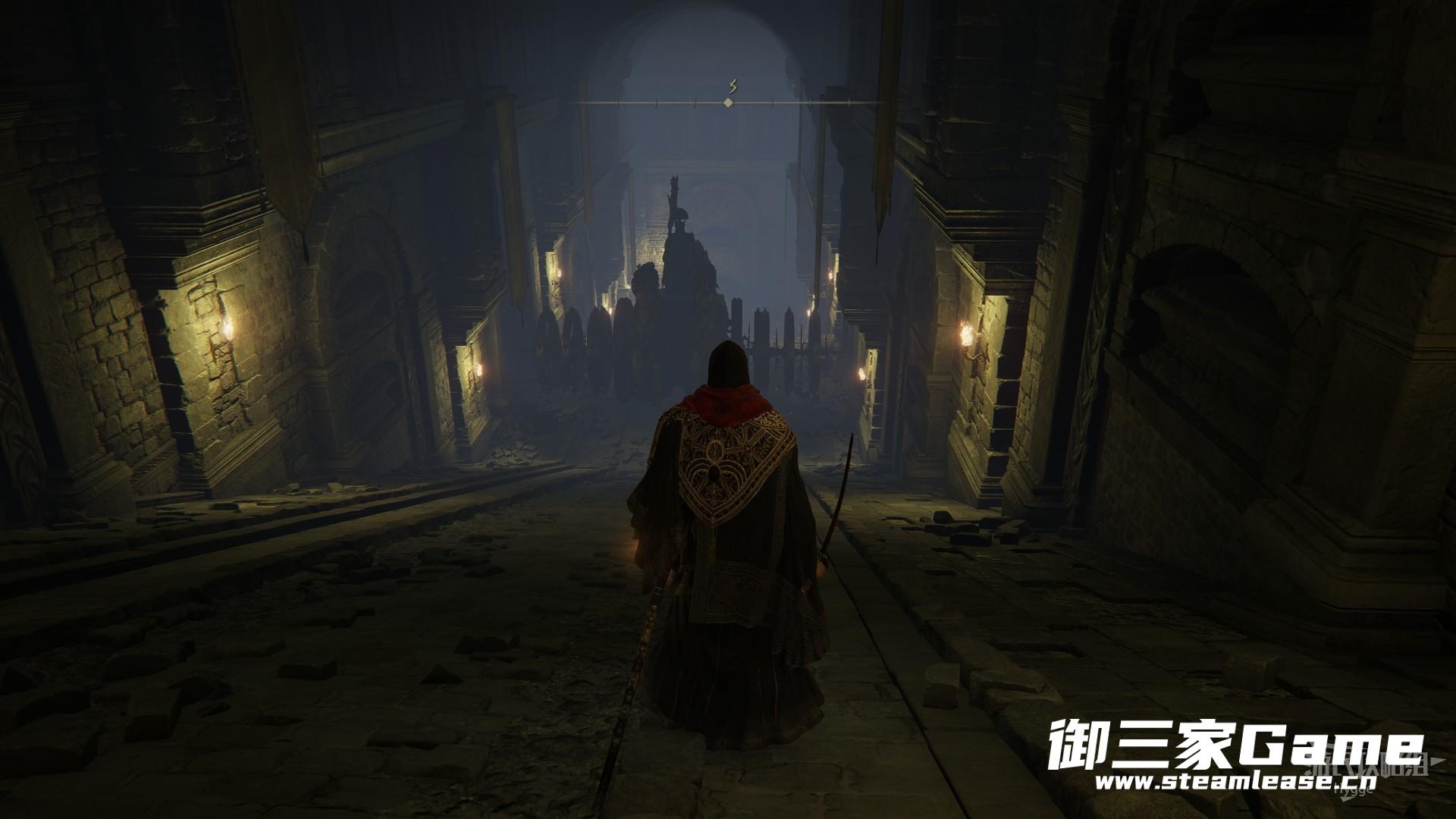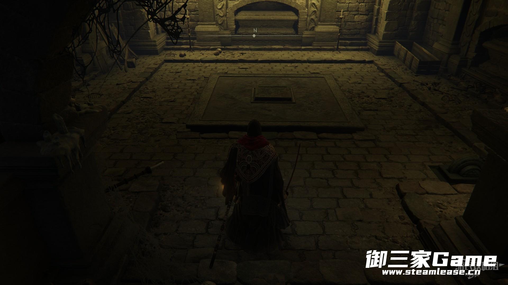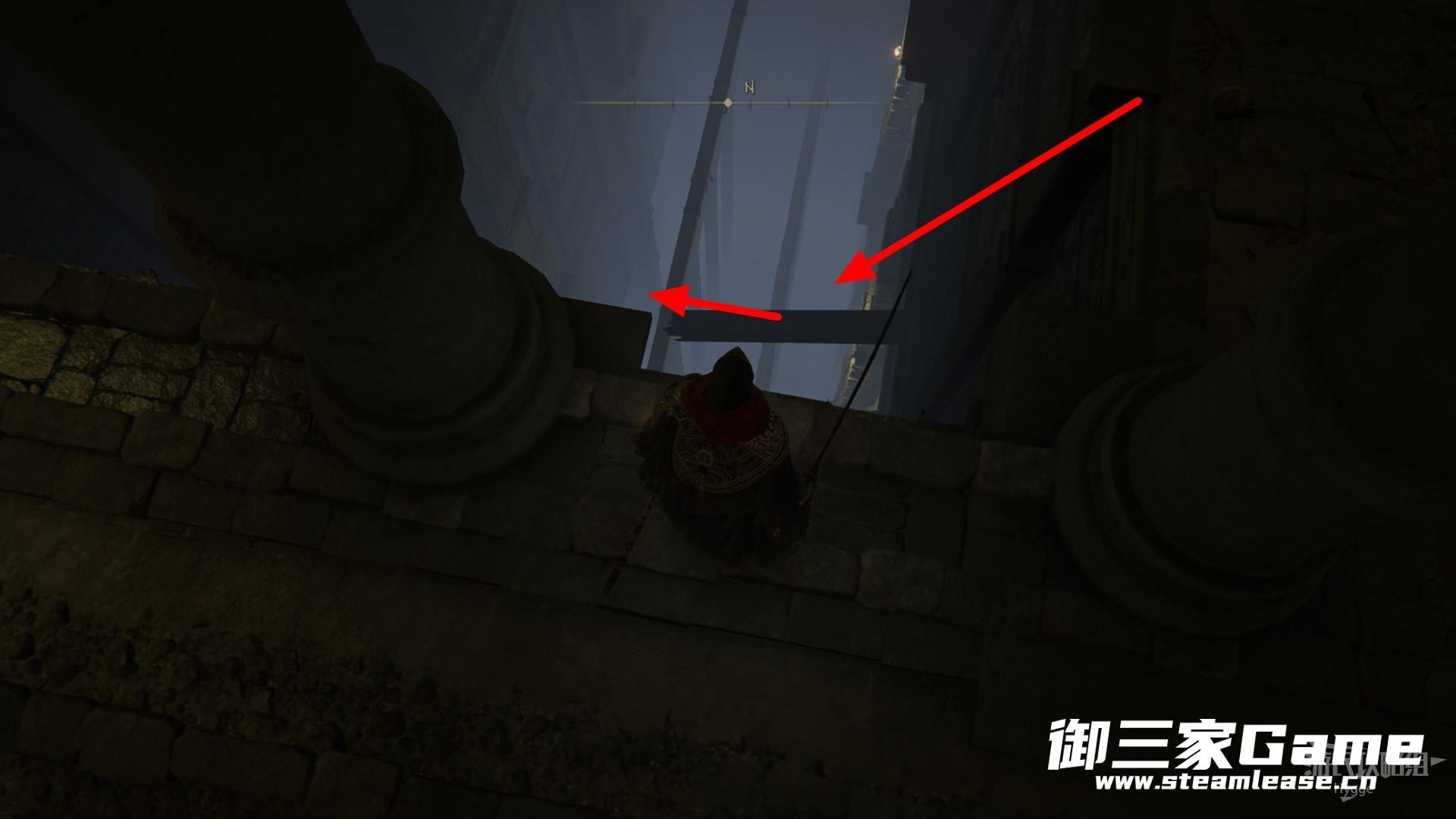 在经过两个骷髅后左转来到升降梯处,通过升降梯向上。