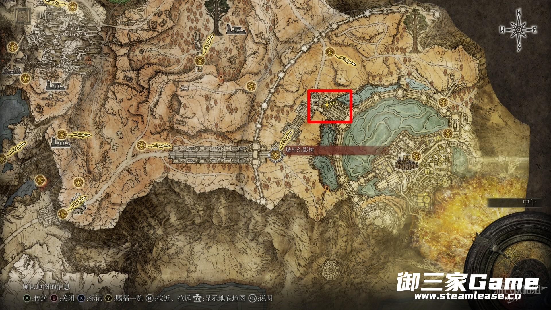 该战灰位于赐福【城外幻影树】和【城外战场遗迹】之间的大道上。