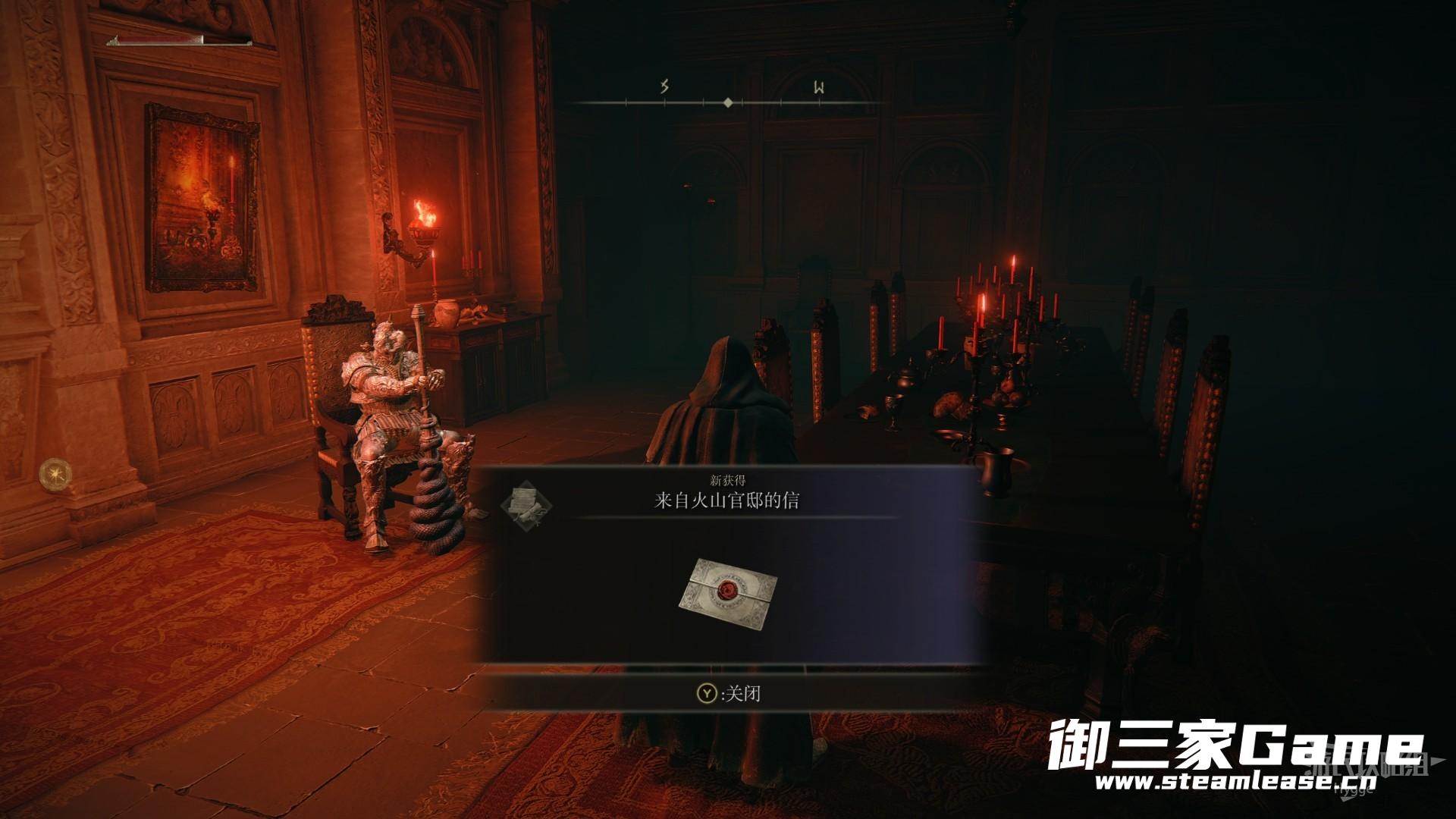 使用钥匙打开餐厅的房门,在餐桌上获得【来自火山官邸的信】。