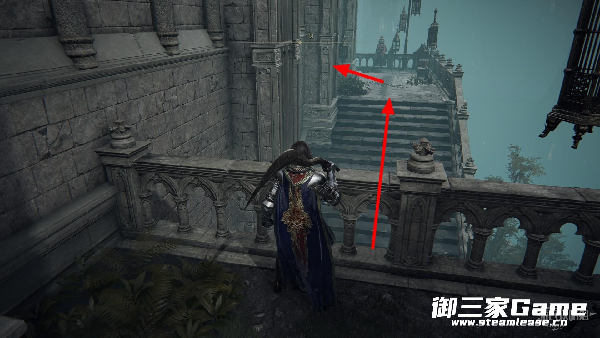 在三层平台左侧跳至下方后前进,在最前方左转。