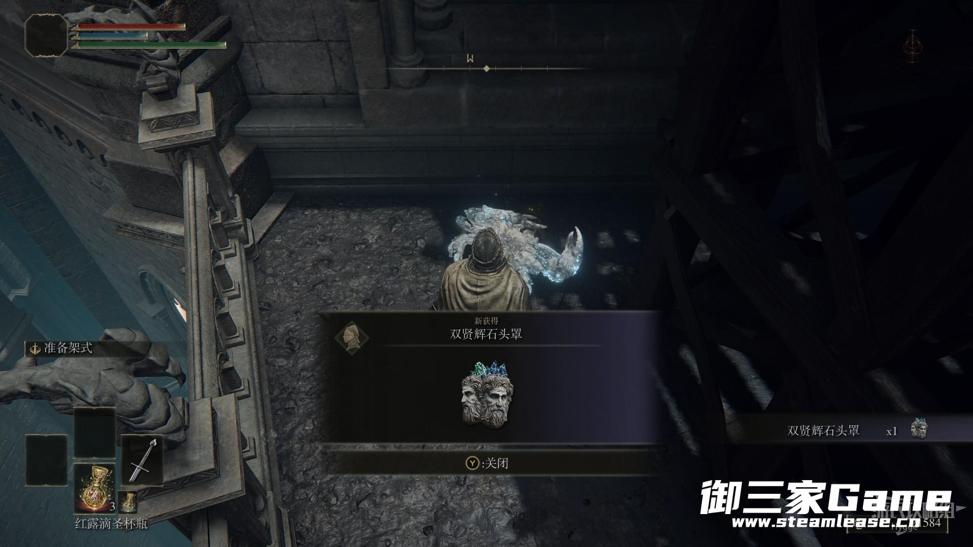 来到教堂的露台,消灭角落中的螃蟹获得【双贤辉石头罩】。