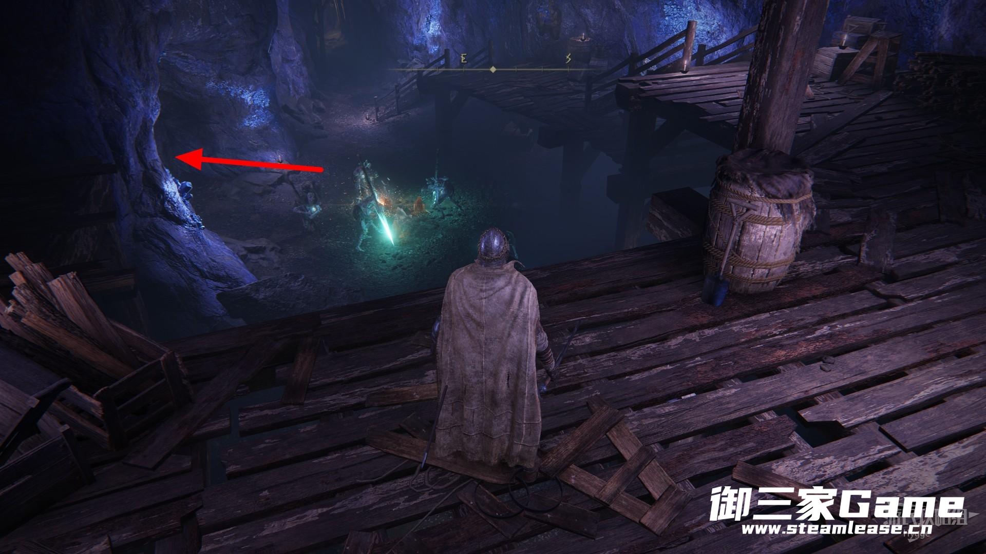 来到下图所示位置后进入左侧的矿洞。