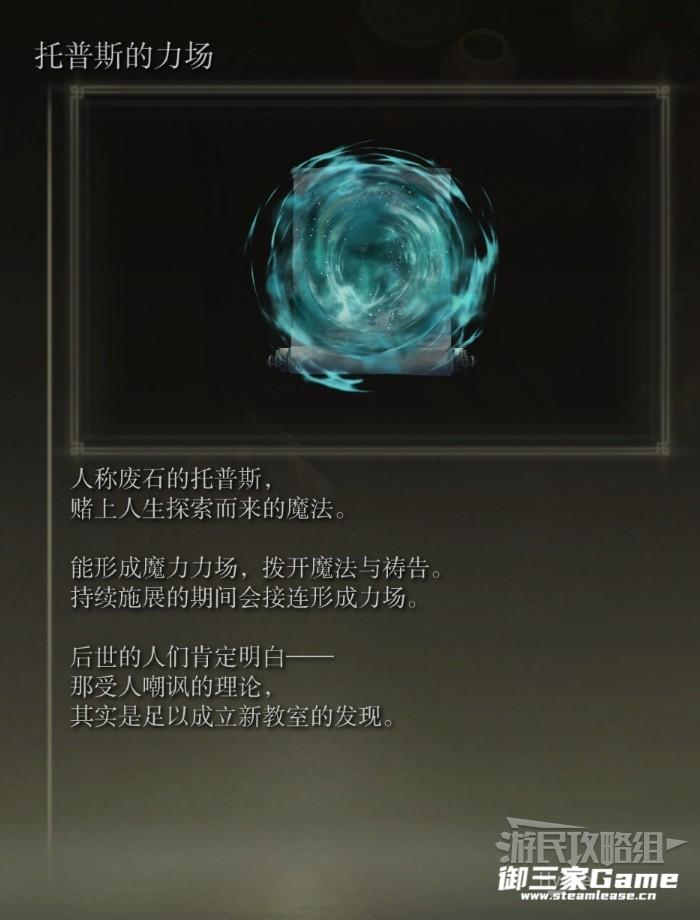 在教室外我们会见到已经死去的托普斯,在他的尸体上可以获得该魔法。