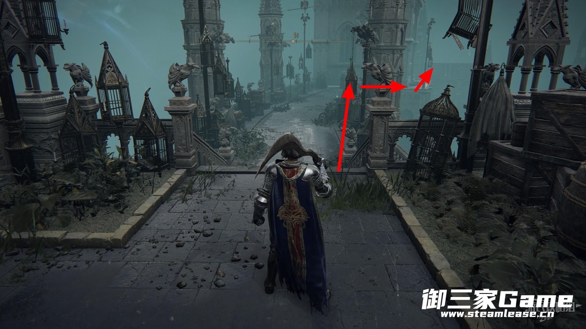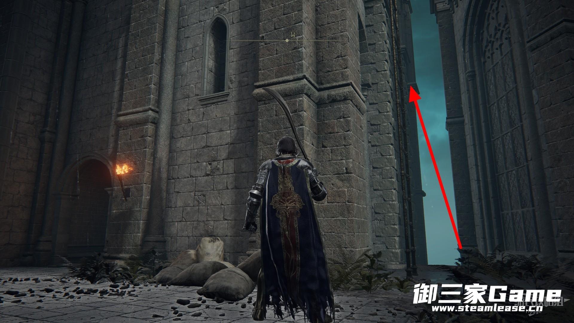 在三层平台左侧跳至下方后前进,在最前方左转。