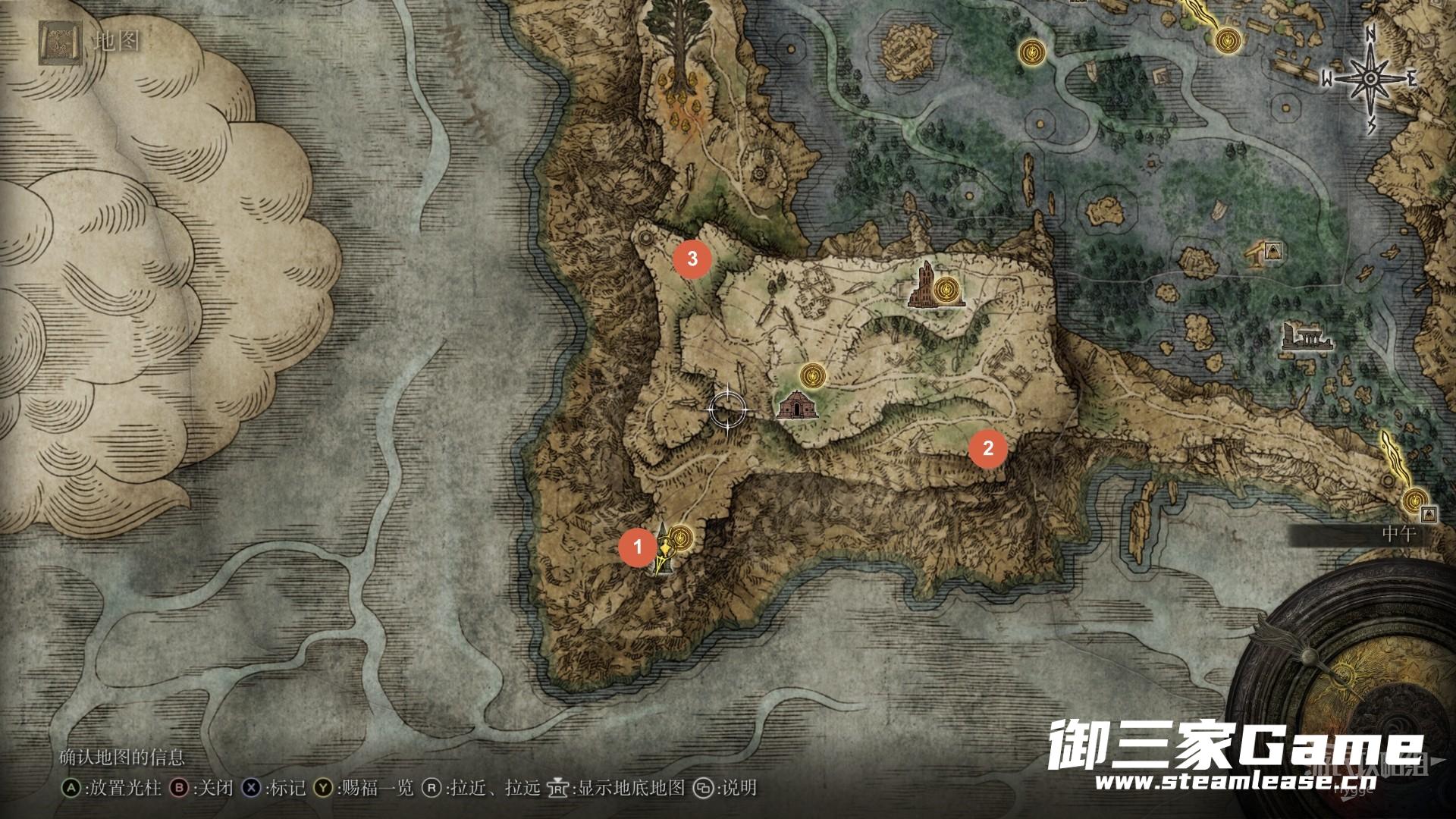 三只大型睿智兽物的大致位置如下图所示,在寻找睿智兽物的途中不要使用传送。