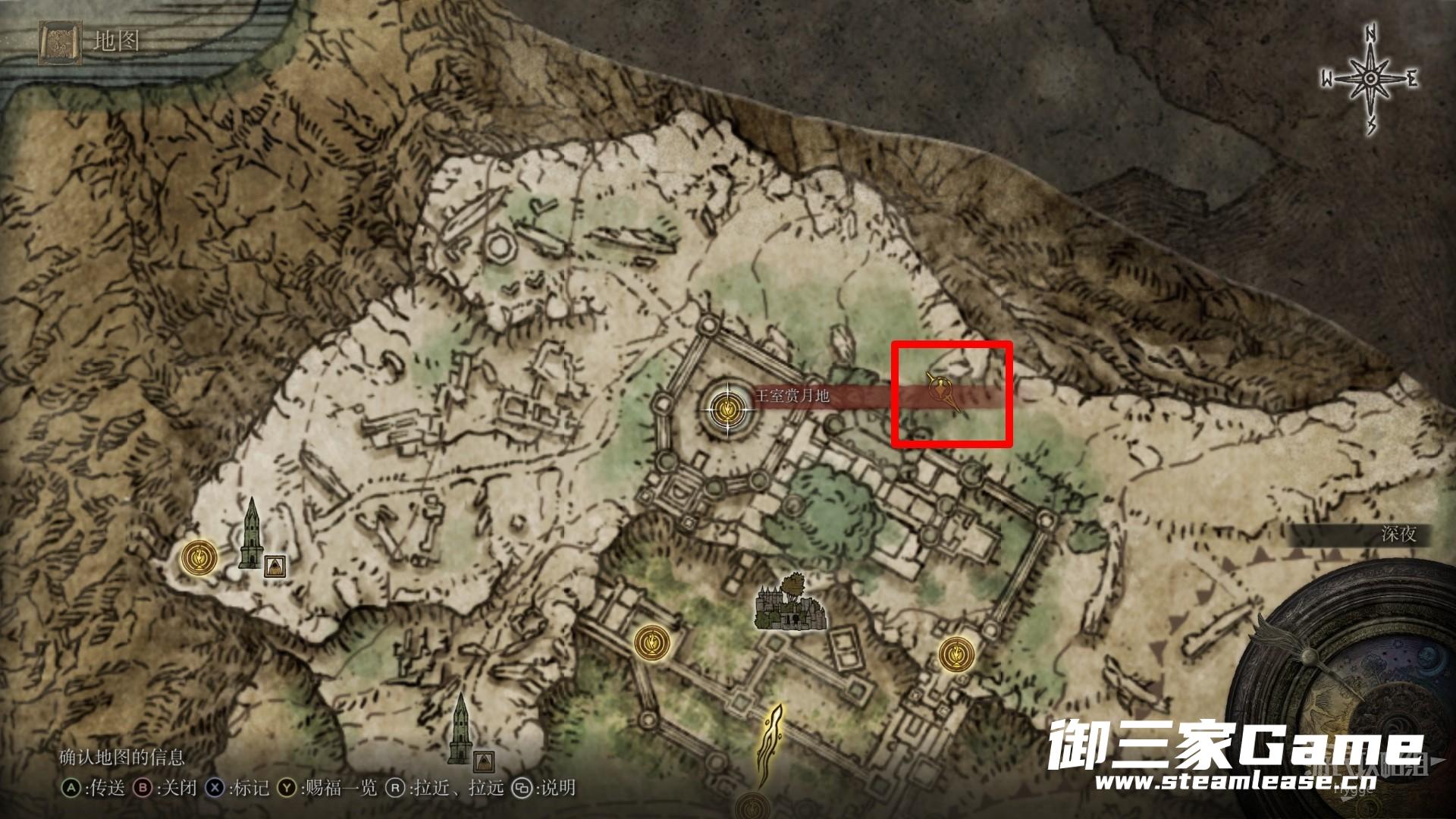 该魔法位于【王室赏月地】东北,卡利亚城寨外的小路中。