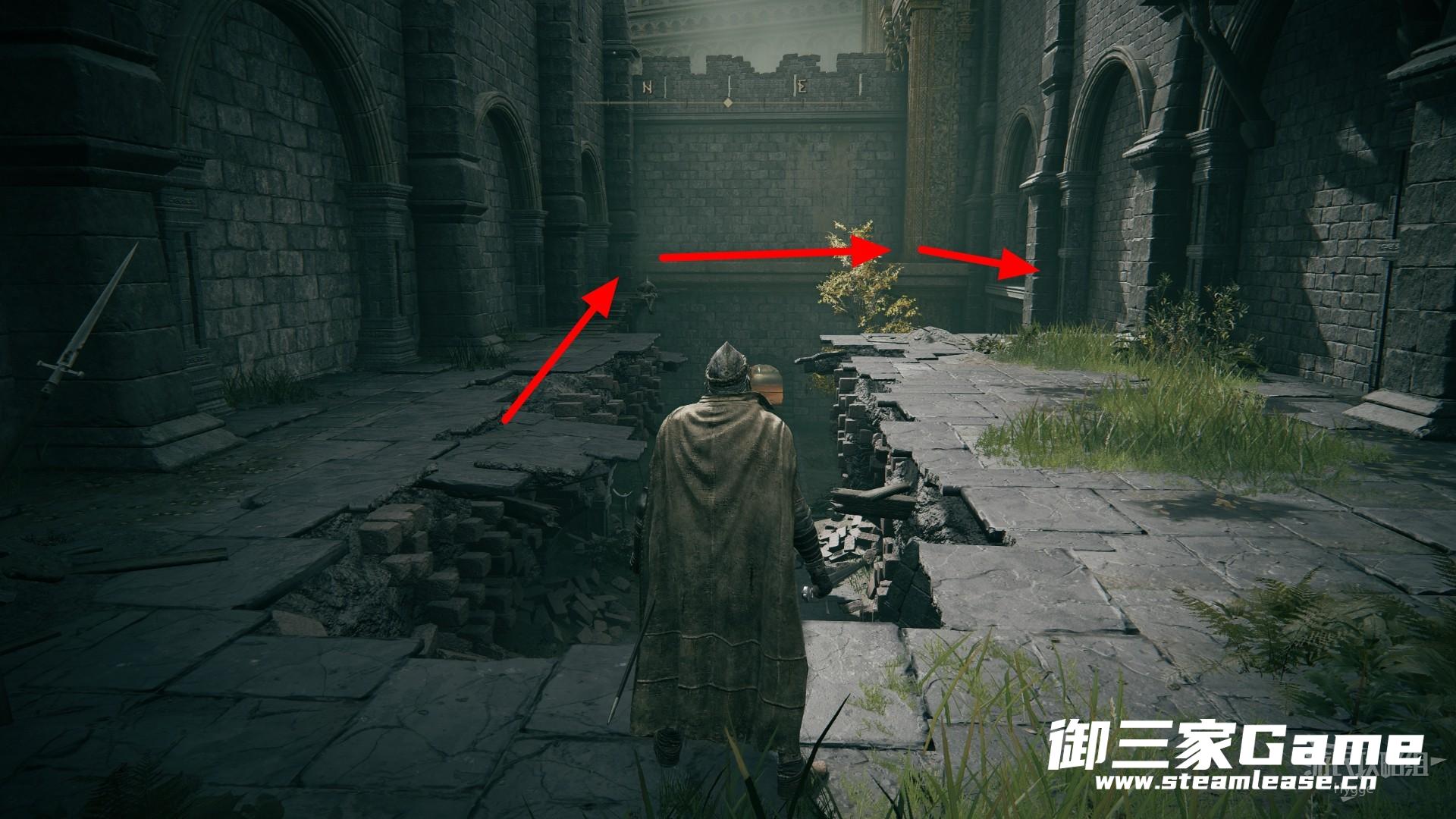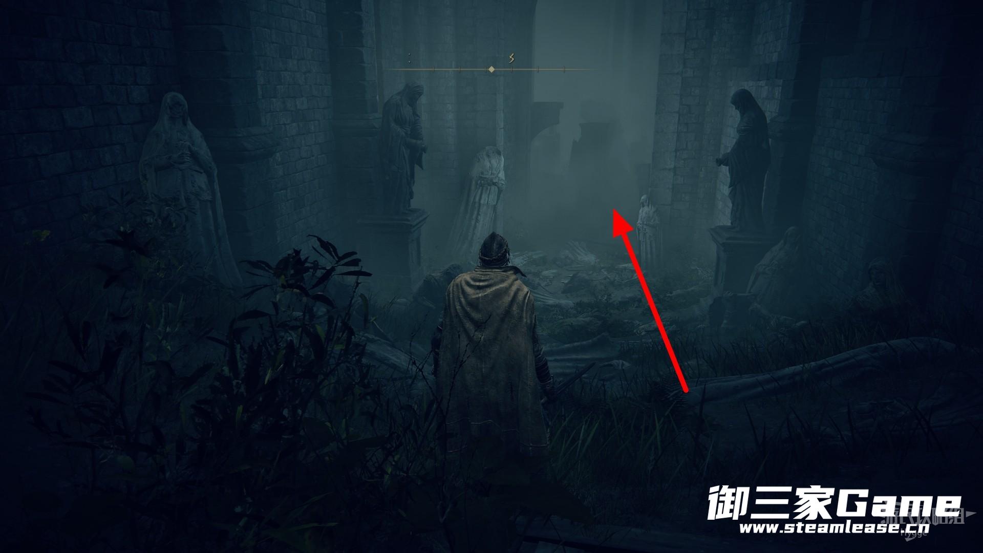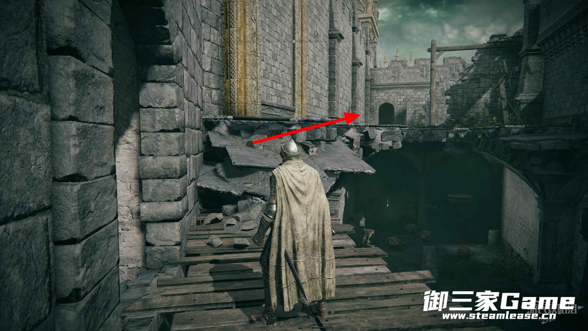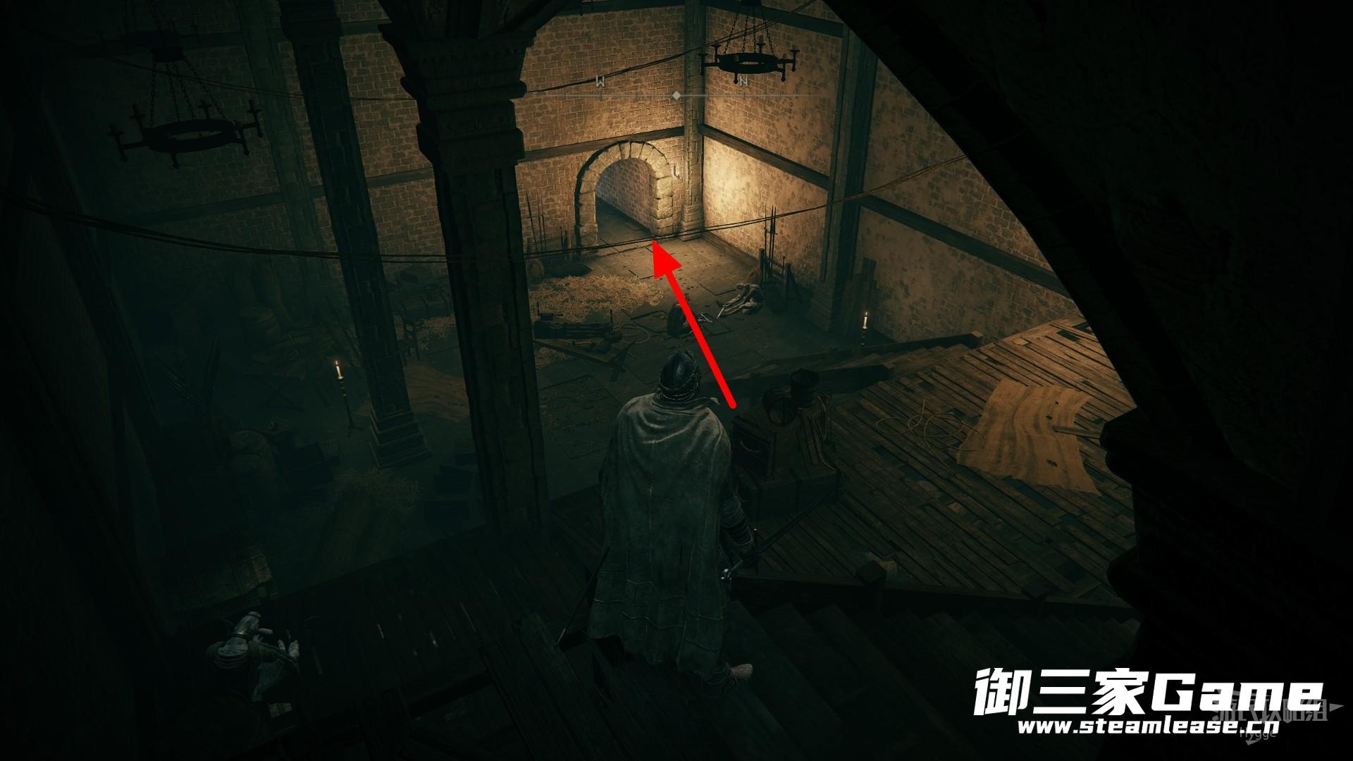穿过窗户后右转,从右侧小房间中的楼梯向上。
