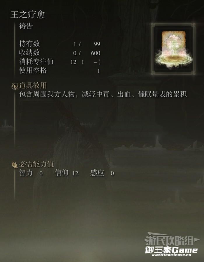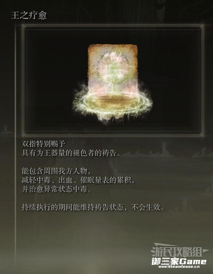 该祷告需要通过【双指祷告书】获得,该祷告书位于王城【城寨一楼】中。