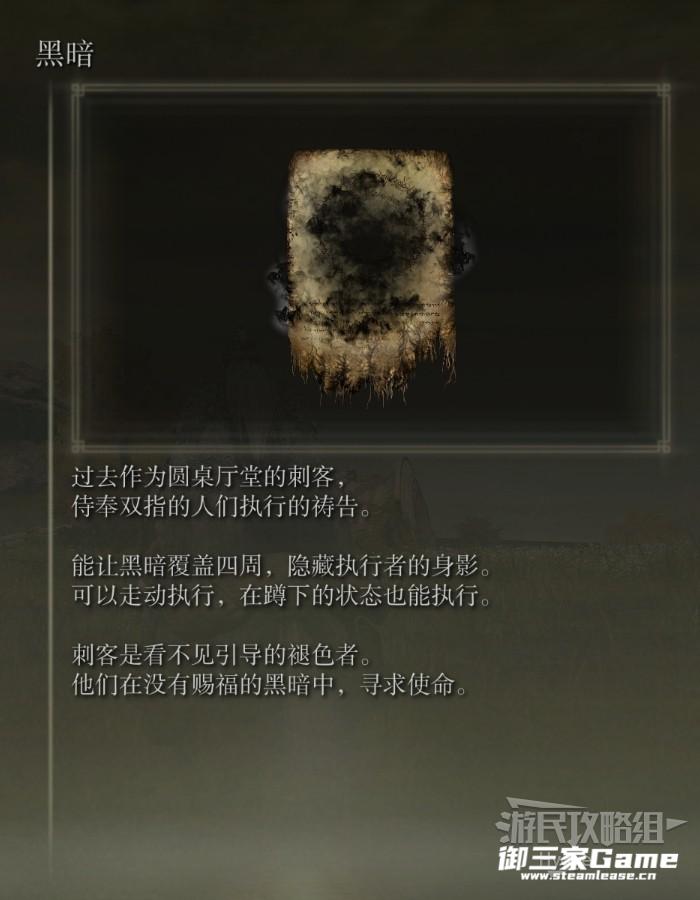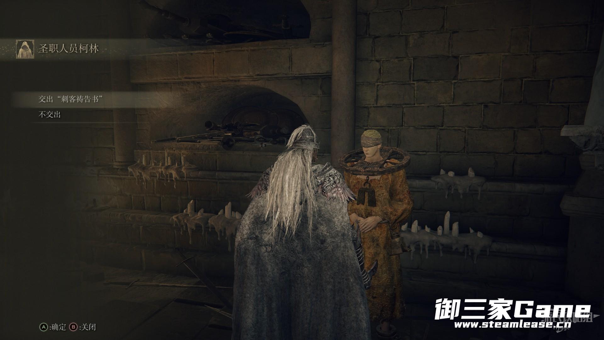 该祷告需要通过【刺客祷告书】获得,首先来到圆桌厅堂从铁匠旁边的楼梯到达下层。
