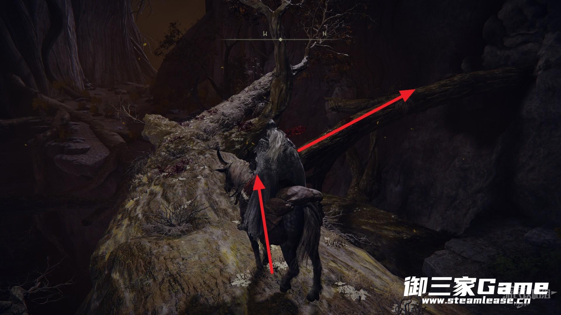 从赐福出发向深根底层深处前进,来到中间的树根上向右上方前进。