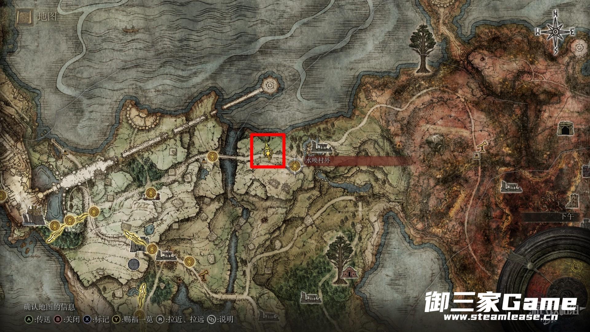 在宁姆格福【水唤村外】西侧可以找到NPC【D】。