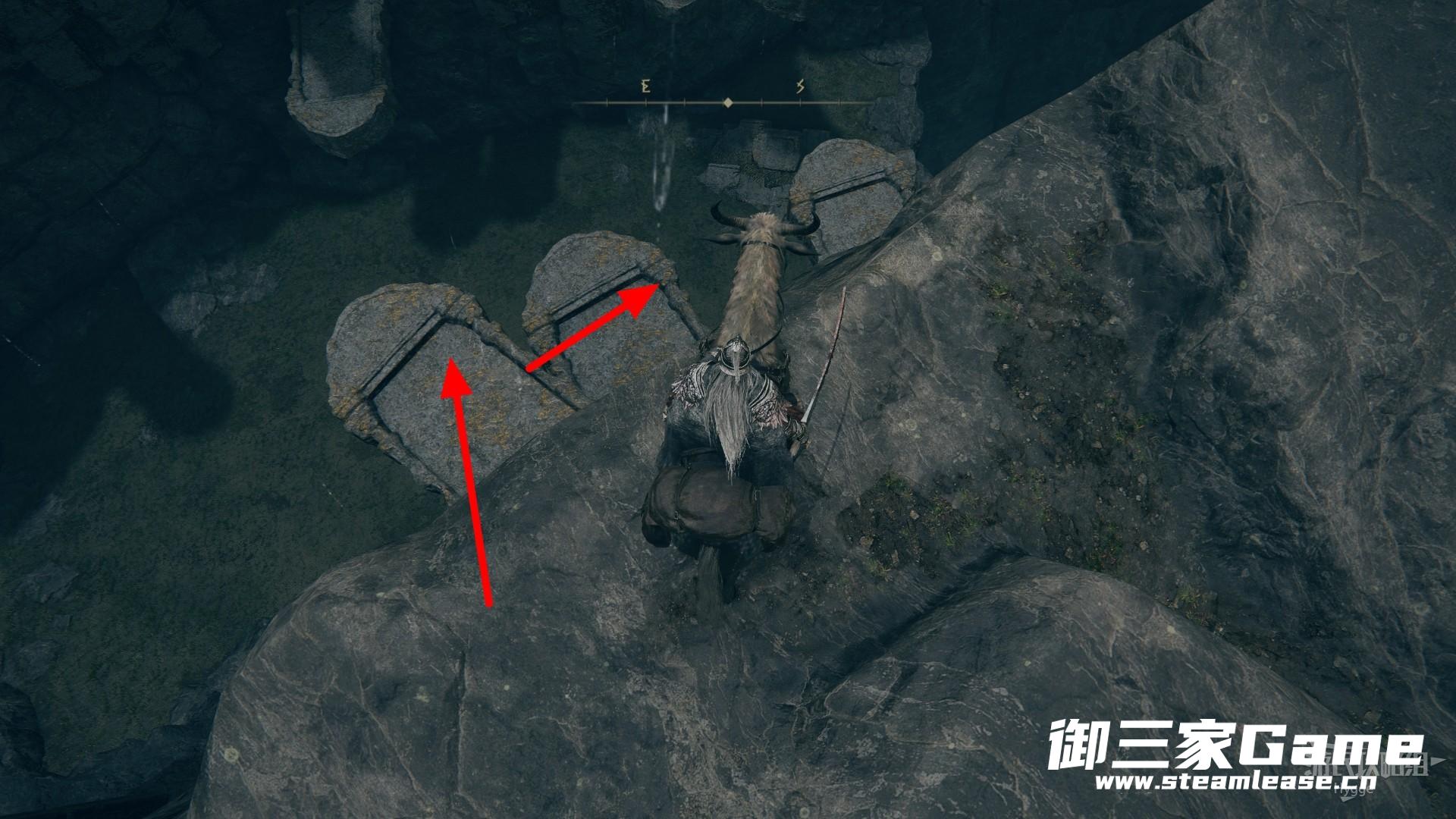 在小黄金树区域边缘通过石板跳至下方。