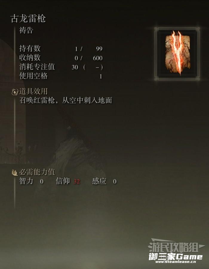 该祷告需要通过【古龙祷告书】获得,祷告书位于天空城【渐毁野兽墓(深处)】附近。