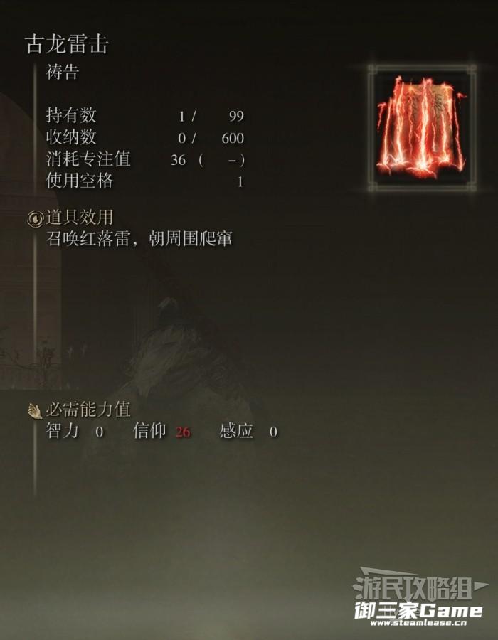 该祷告需要通过【古龙祷告书】获得,祷告书位于天空城【渐毁野兽墓(深处)】附近。