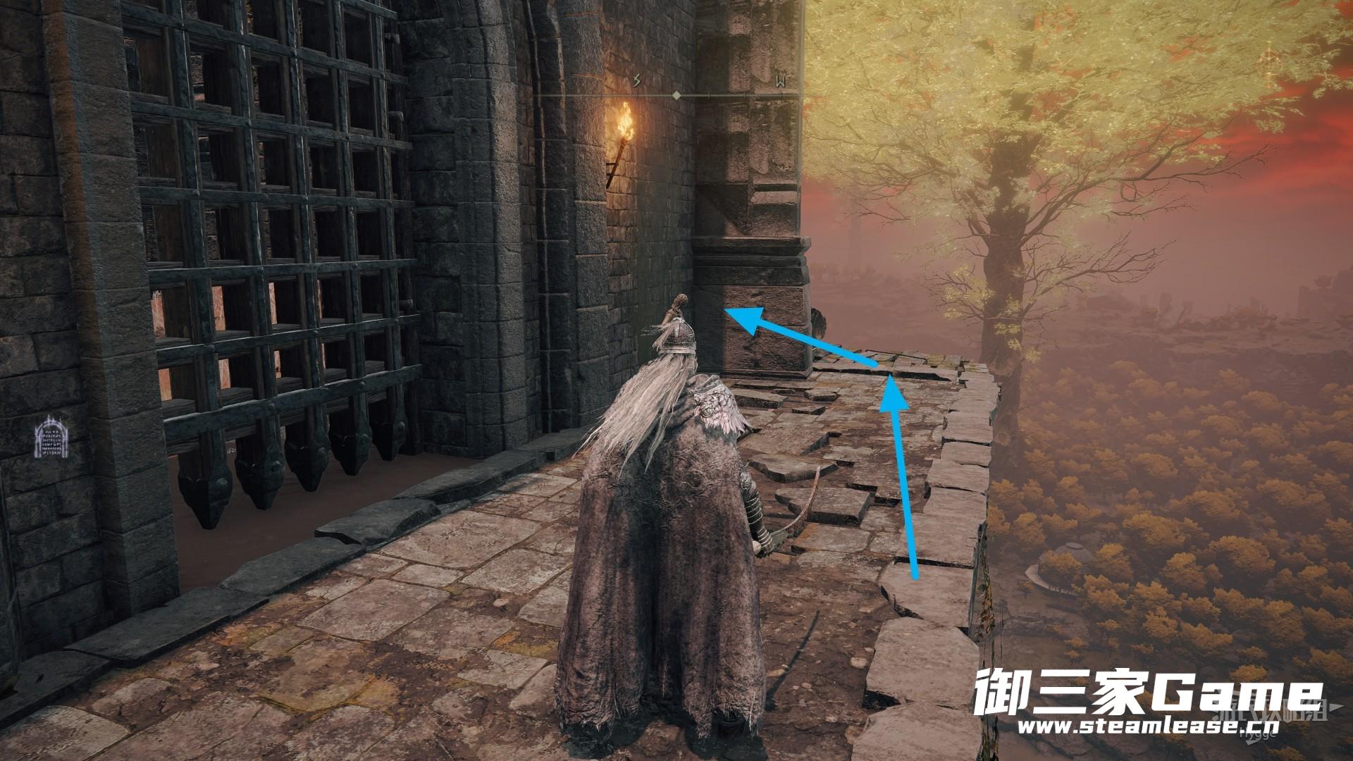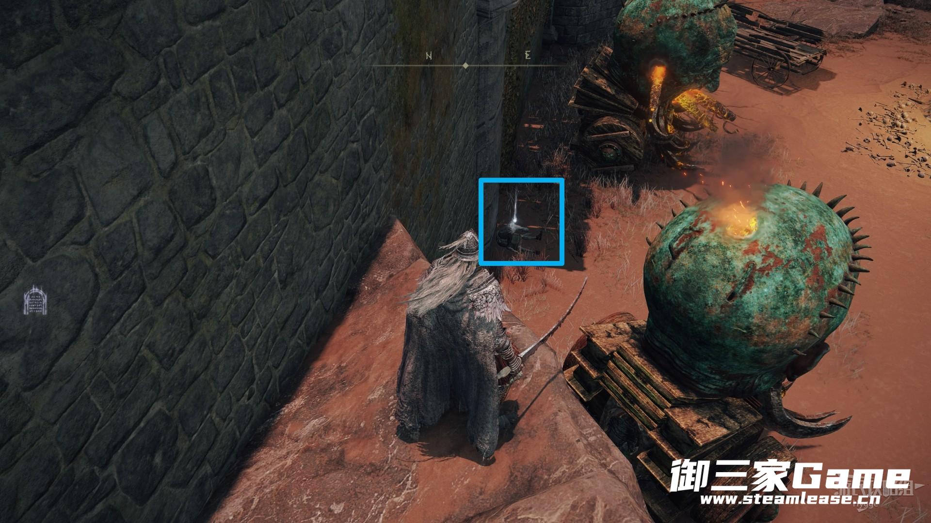 来到要塞大门处沿着道路继续前进,在前方左转。