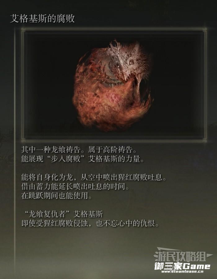 在此处会遭遇巨龙【“步入腐败”艾格基斯】,将其消灭后返回大龙飨教堂。